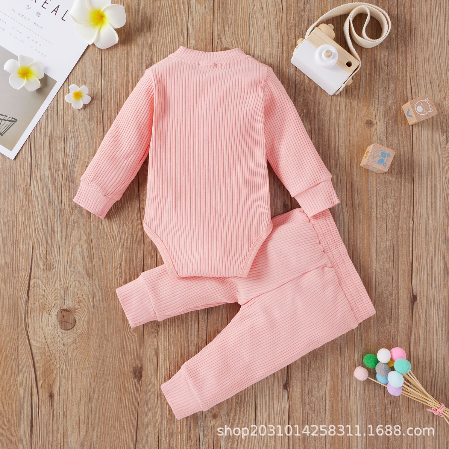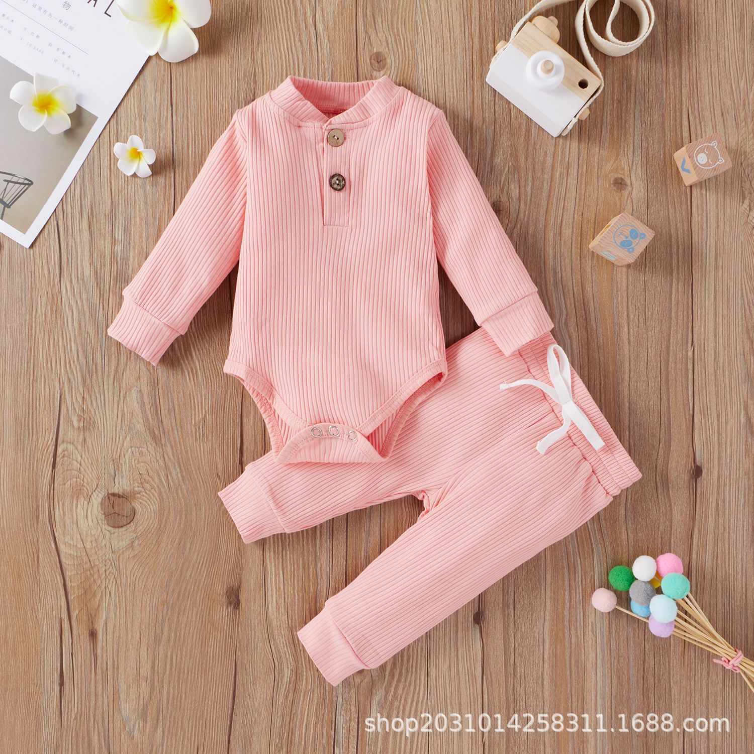 2022 새로운 아동복 아마존 소년과 소녀 단색 원피스 긴 소매 바지 아기 바닥 세트 재고스토어 가기