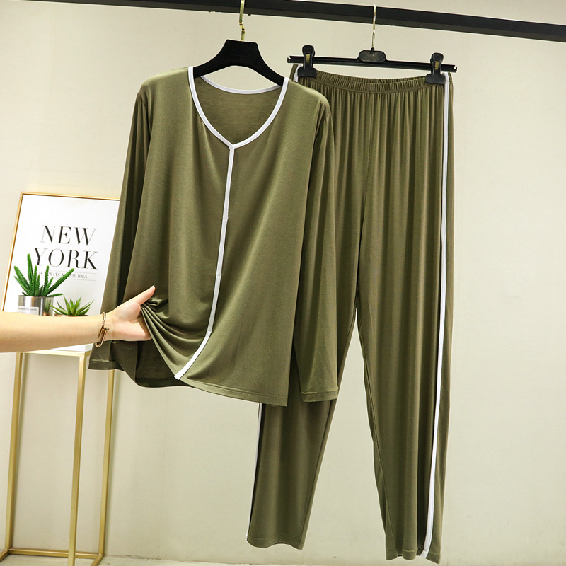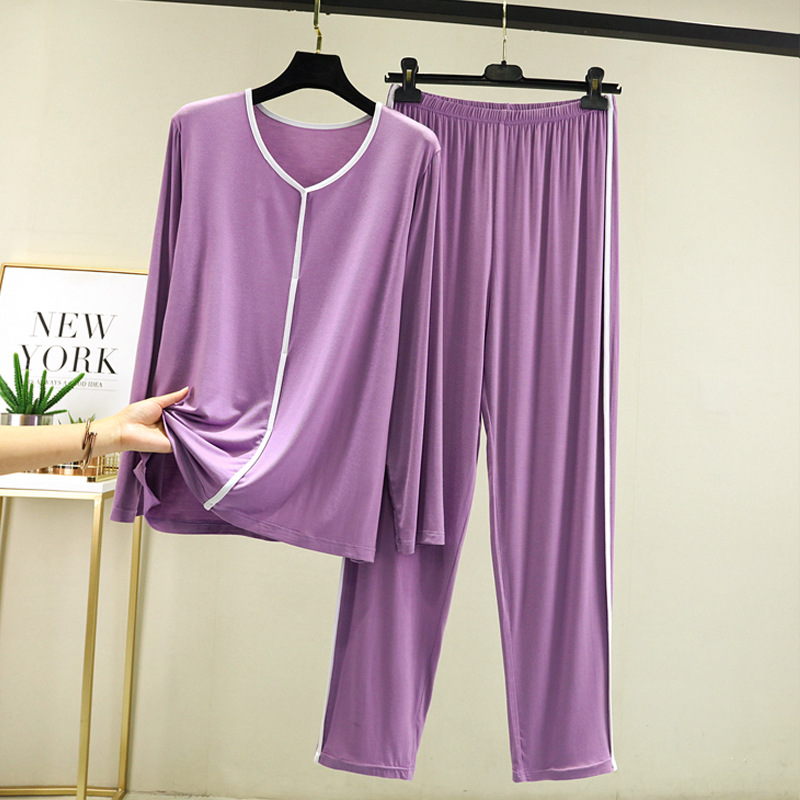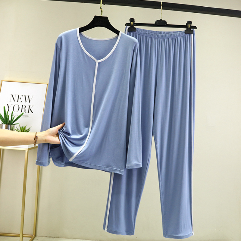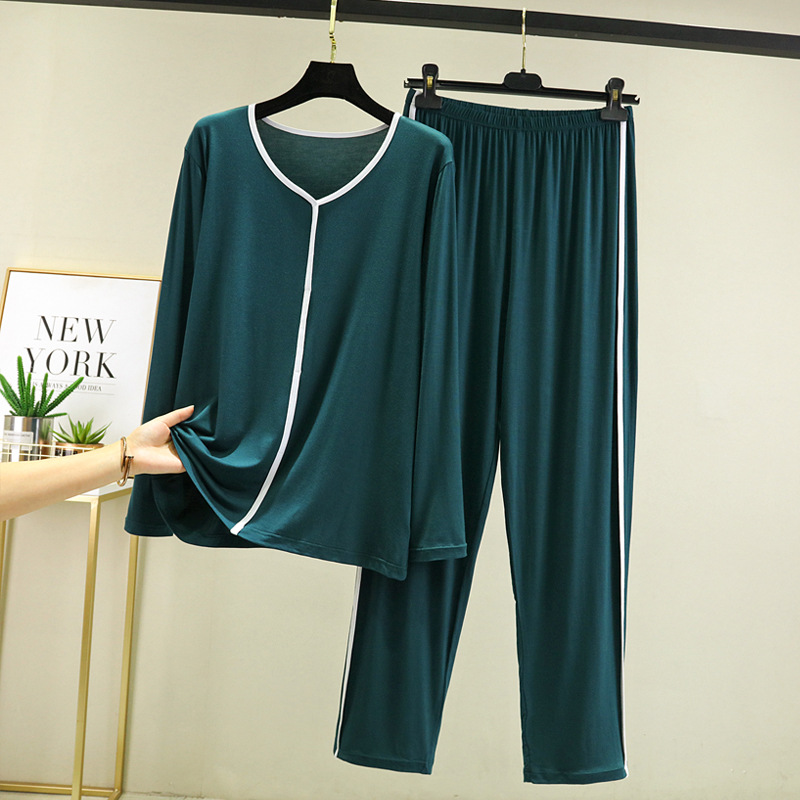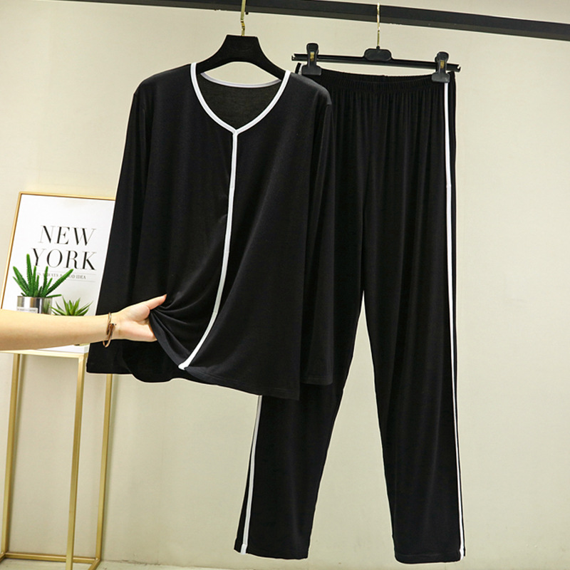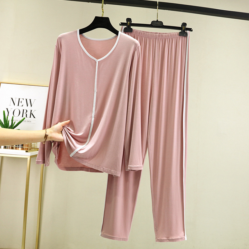 모달 잠옷 세트 여성의 봄과 가을 긴팔 바지 얇은 편안한 캐주얼 홈웨어 브이넥 투피스 세트