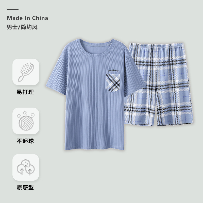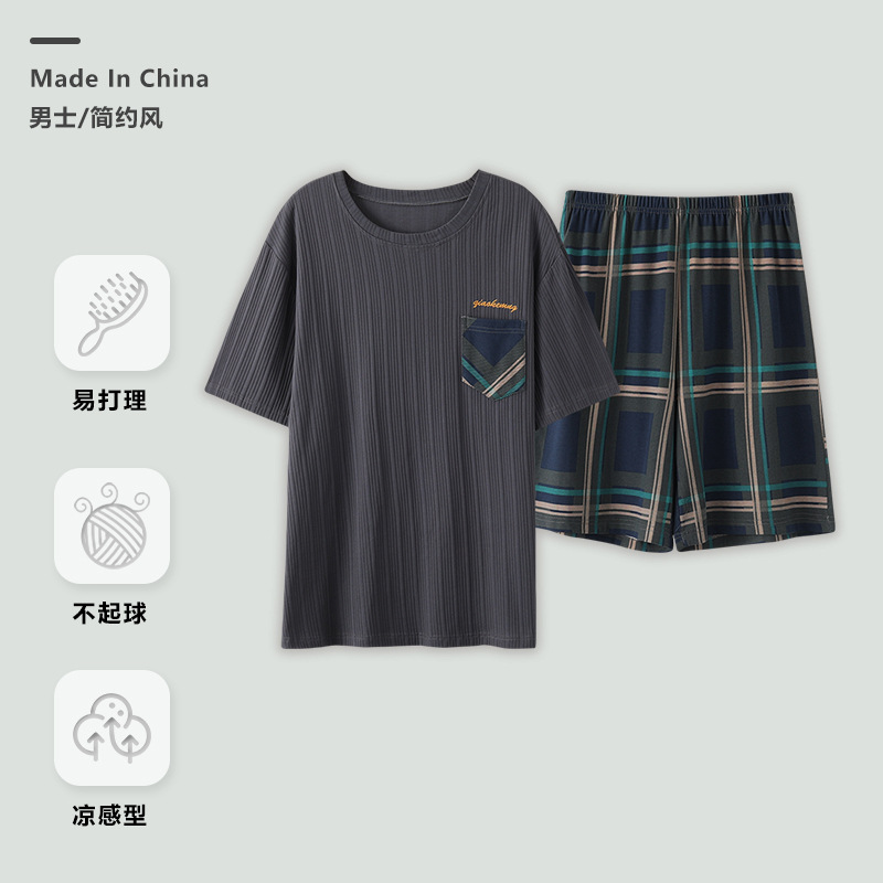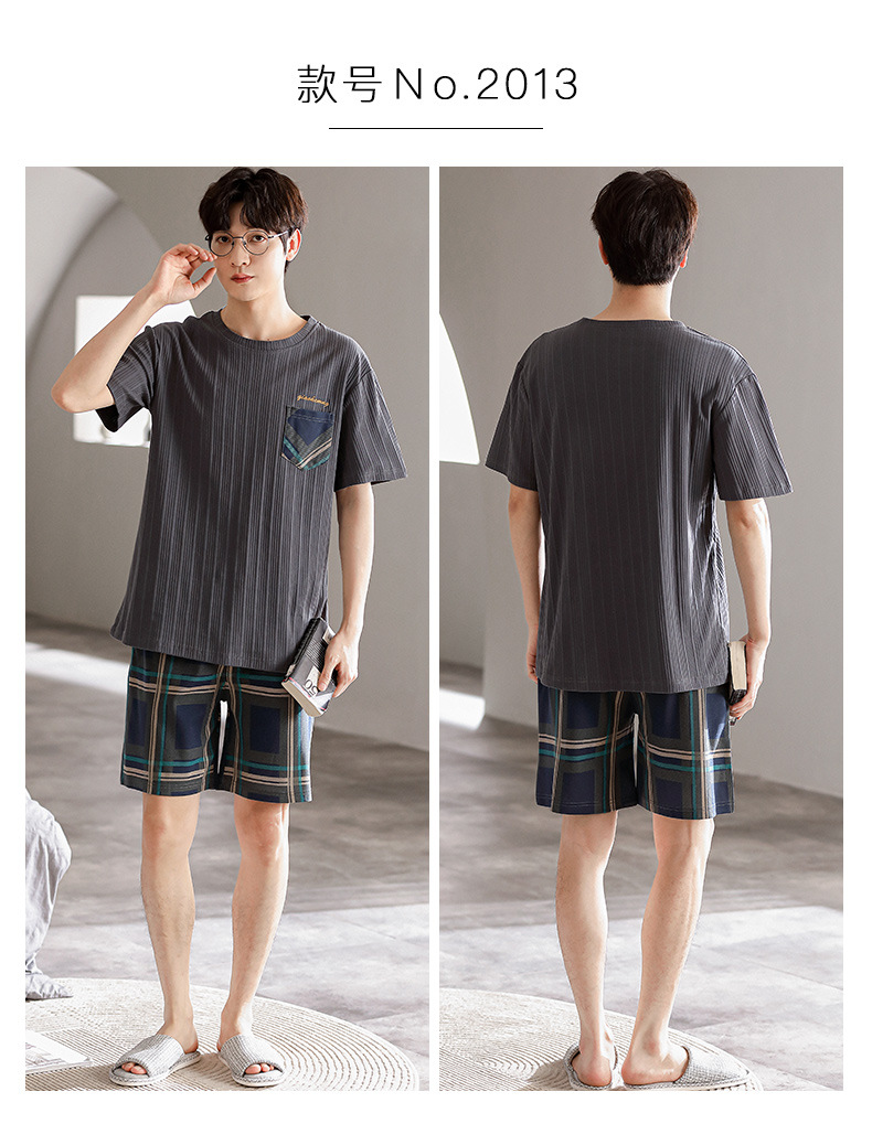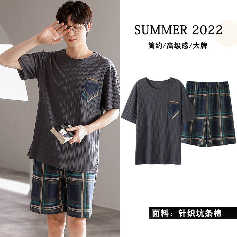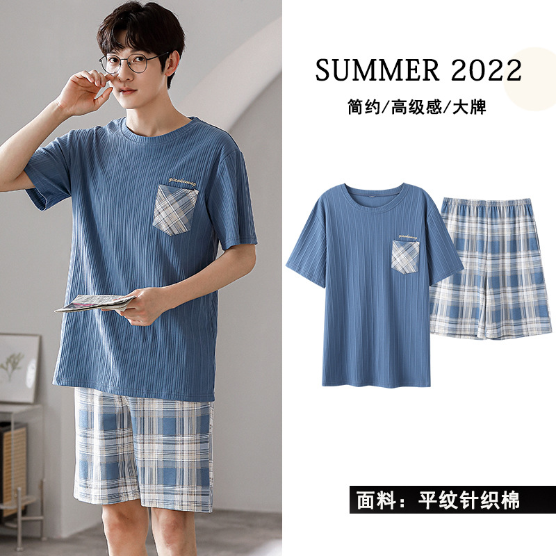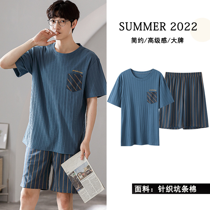 잠옷 남자의 여름 얇은 편안한 니트 면 실크 반팔 플러스 사이즈 가정 옷 십대 2023 반팔 세트스토어 가기