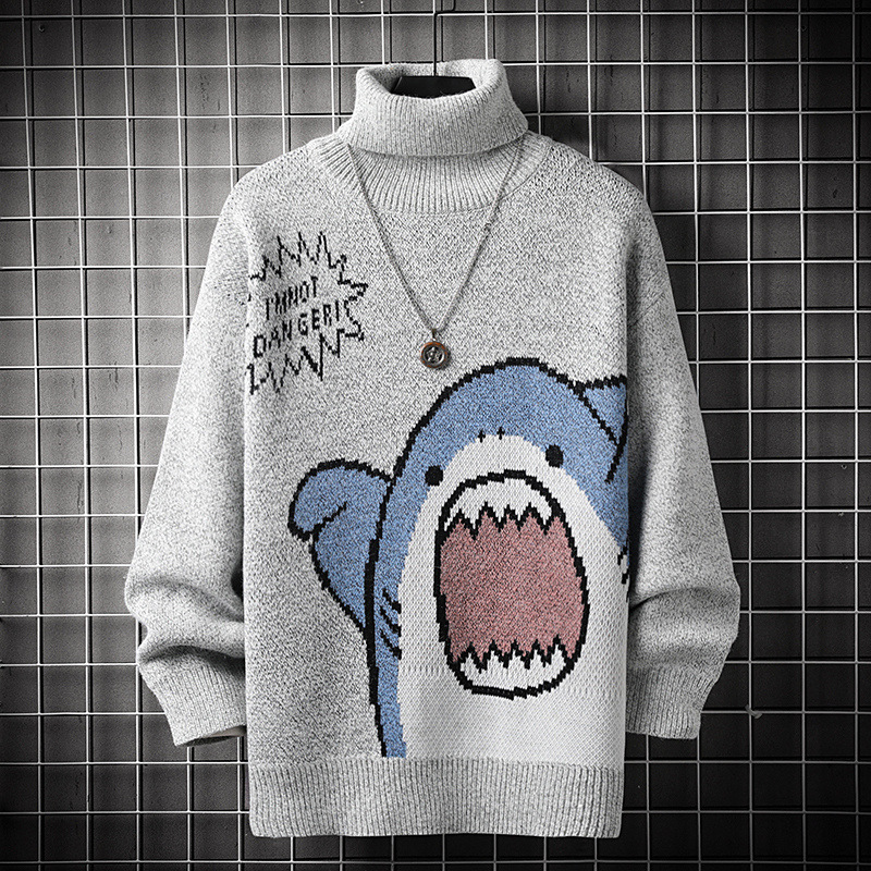 라운드 넥 터틀넥 가을과 겨울 대외 무역 재고 스웨터 남자의 청소년 느슨한 캐주얼 만화 상어 니트 베이스 셔츠