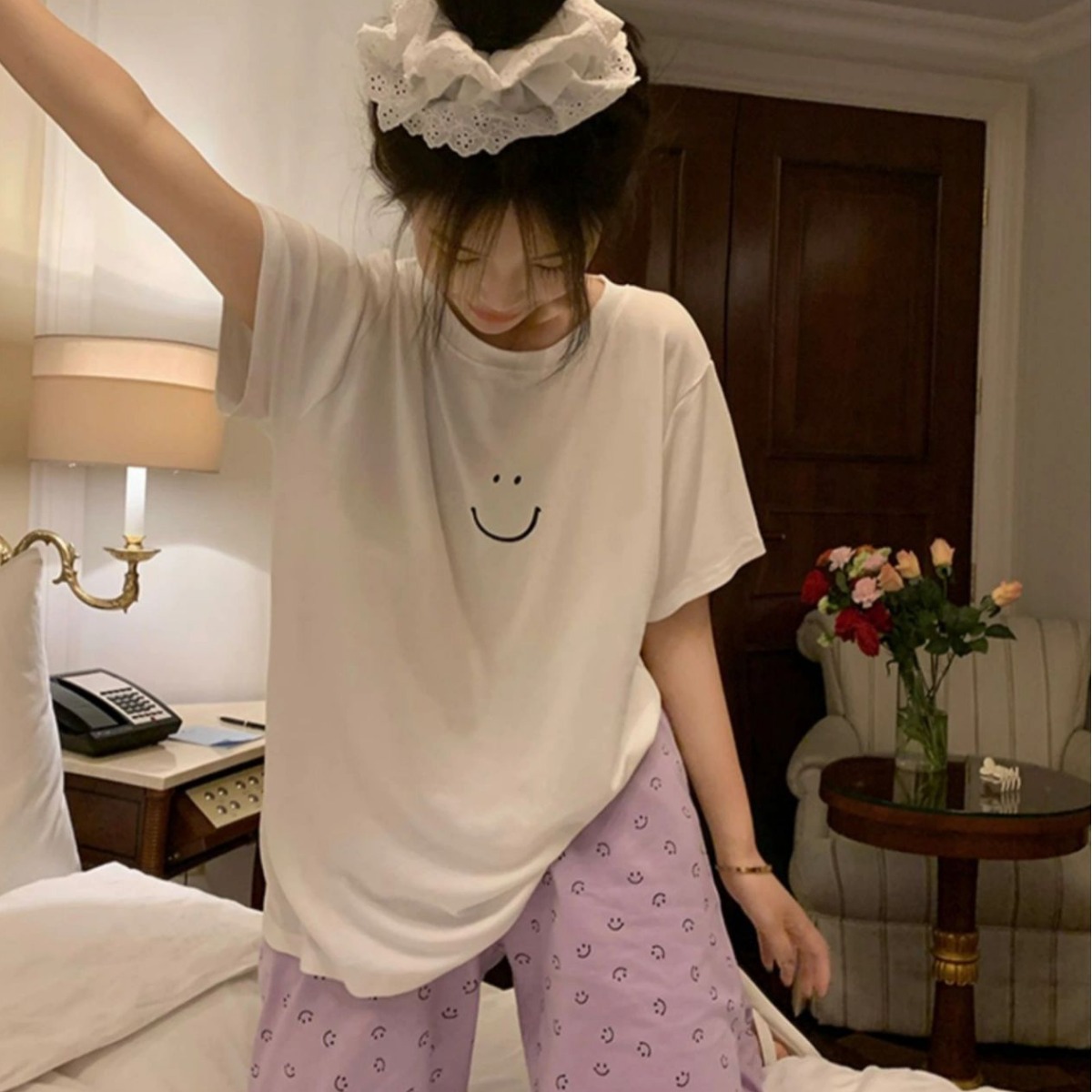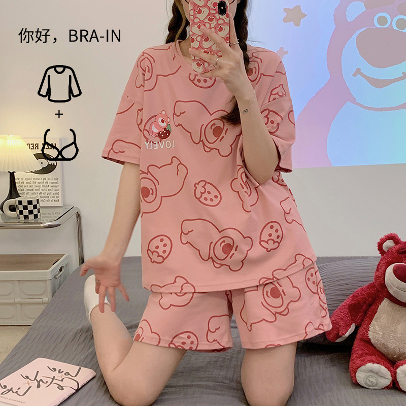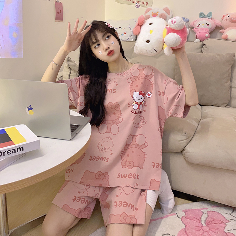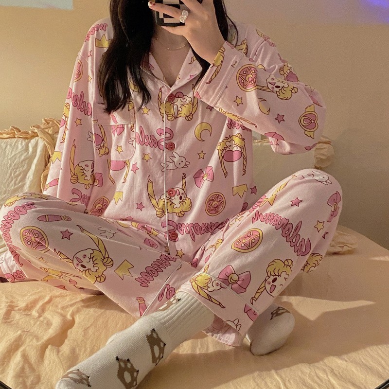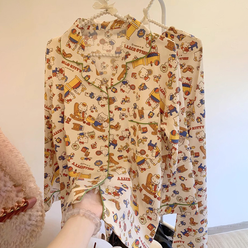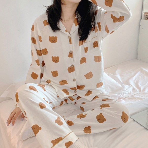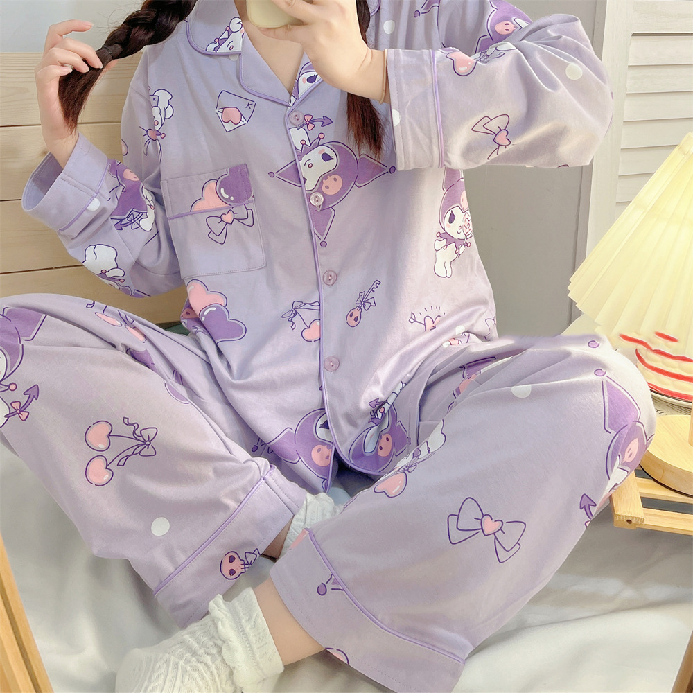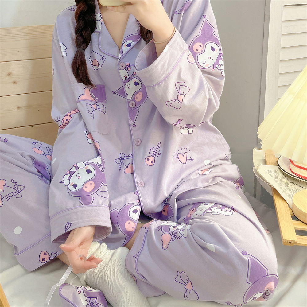 인터넷 연예인 Kulomi 한국식 잠옷 여자의 봄과 가을 긴 소매 바지 투피스 일본식 만화 달콤한 귀여운 가정복스토어 가기