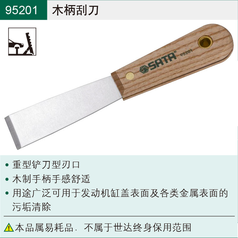 SATA Shida 도구 나무 손잡이 스크레이퍼 스테인레스 스틸 드라이버 스크레이퍼 페인트 스크레이퍼 95201/97105
