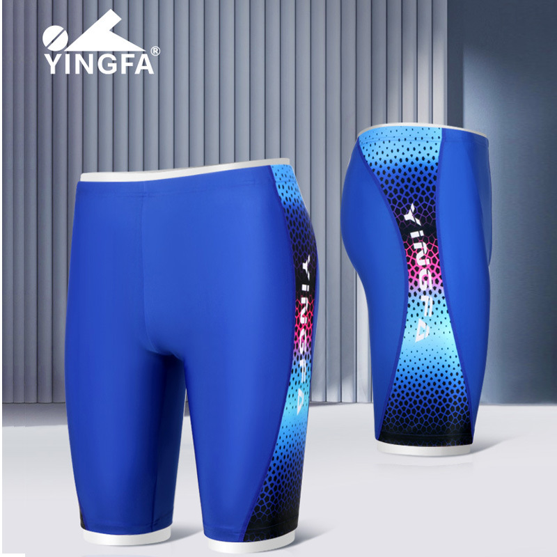 Yingfa 수영 트렁크 중간 발 플러스 사이즈 수영 온천 스포츠 훈련 대회 남자의 5 점 수영 트렁크