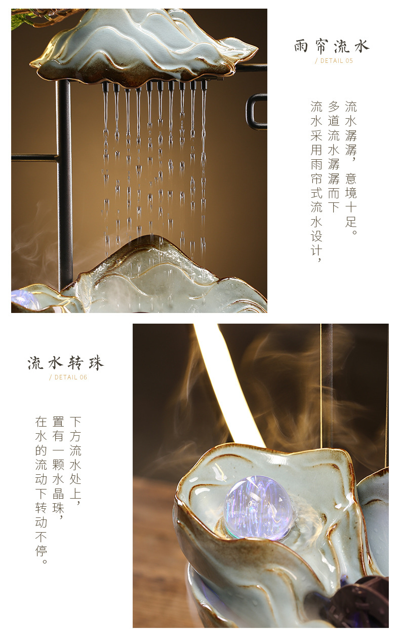 창조적 인 분수 풍경 행운의 물 장식 가습기 중국 가정 거실 입구 사무실 집들이 선물