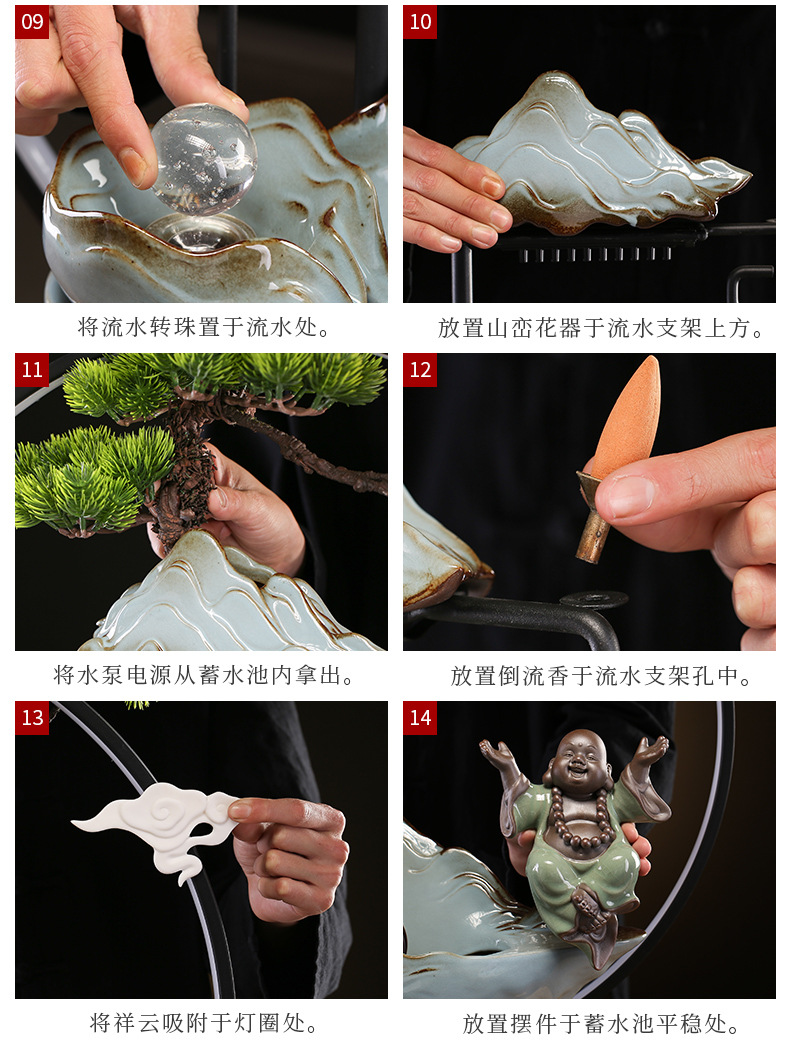 창조적 인 분수 풍경 행운의 물 장식 가습기 중국 가정 거실 입구 사무실 집들이 선물스토어 가기