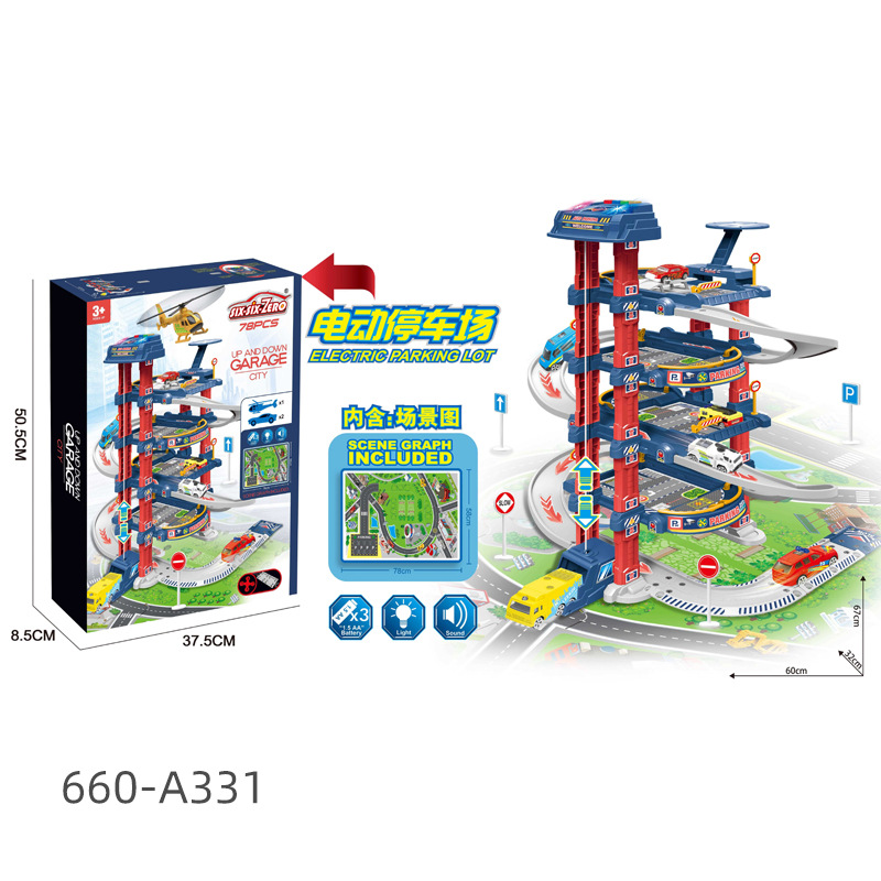 660-A331灯光+音乐 多功能四层城市升降停车场套装(配2合金车、1合金飞机 1灯塔,1路标、1环保地图58x78cm)78pcs | 开窗盒 | 37.5X8.5X50.5cm | 16 | 72.5X40.5X107cm | 33/30kg | 0.31 | 1.875kg |
