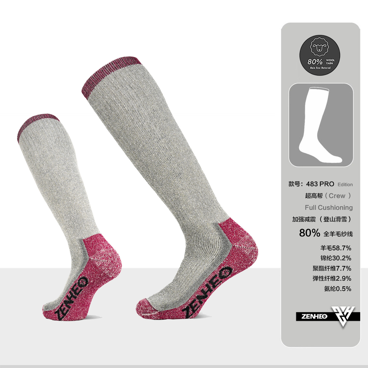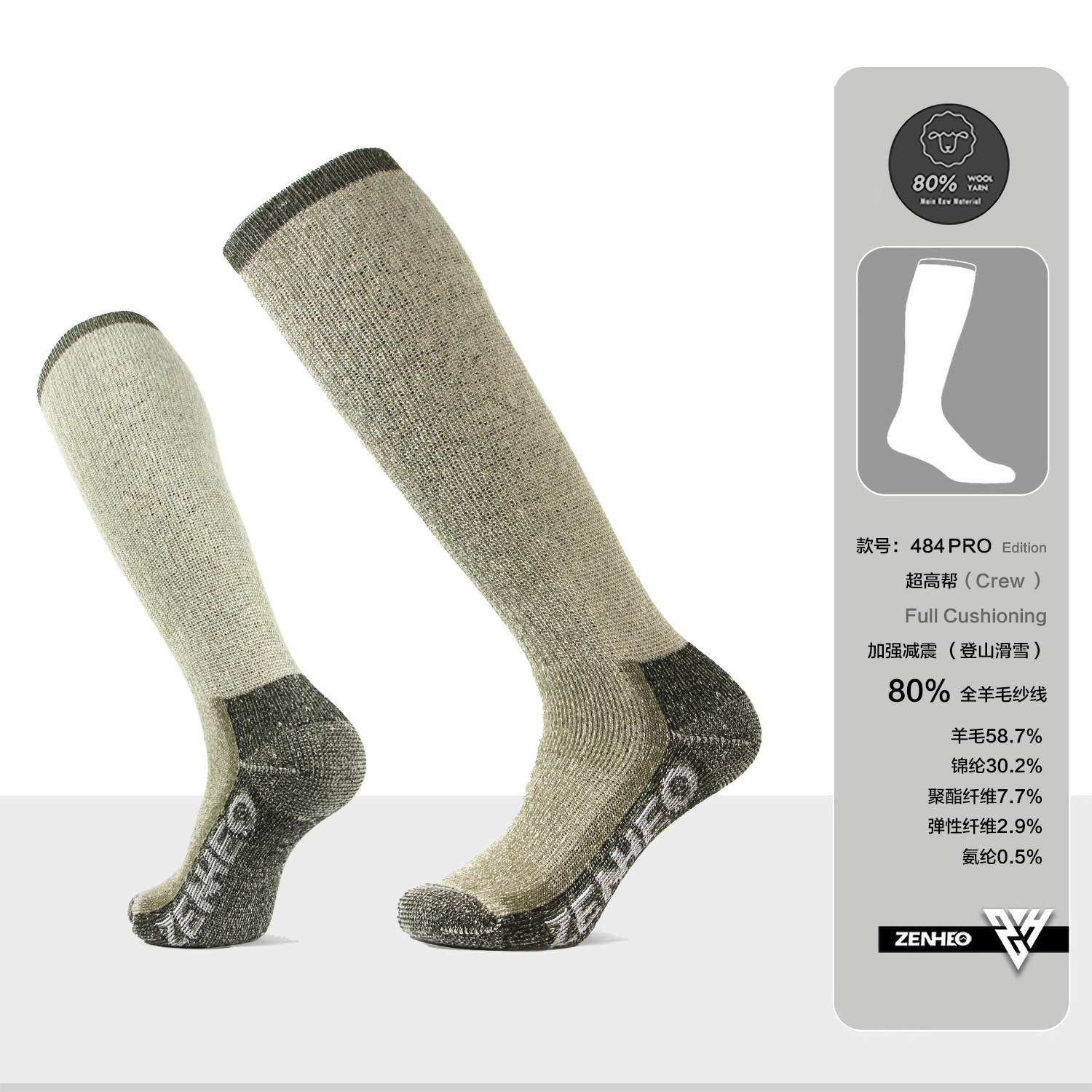 ZENHEO 메리노 두꺼운 울 양말 남성용 및 여성용 야외 하이킹 풀 테리 타월 미드 튜브 하이 탑 양말