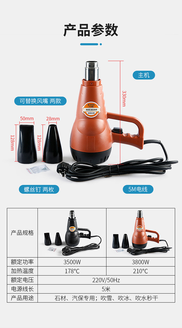 스톤 특수 고온 스톰 건 가열 건조 헤어 드라이어 산업용 고출력 강한 물 분사 스노우 핫 에어건