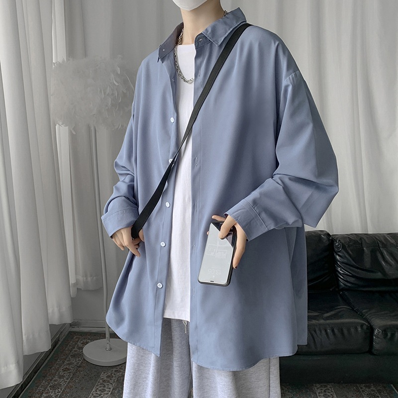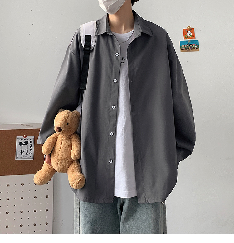 남성용 컬러 긴팔 셔츠, 한국 스타일 트렌디한 신축성 셔츠, 캐주얼한 질감, 다용도, 다림질 필요 없는 상의, 드롭쉬핑 가능스토어 가기