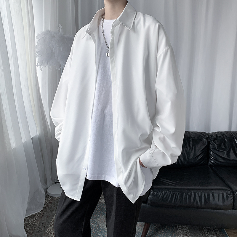 남성용 컬러 긴팔 셔츠, 한국 스타일 트렌디한 신축성 셔츠, 캐주얼한 질감, 다용도, 다림질 필요 없는 상의, 드롭쉬핑 가능
