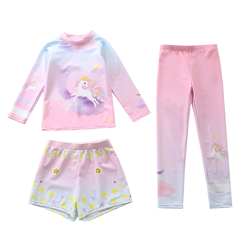 어린이 수영복 스플릿 여아 긴팔 트렁크 수영복 아기 소녀의 보수적 인 수영복