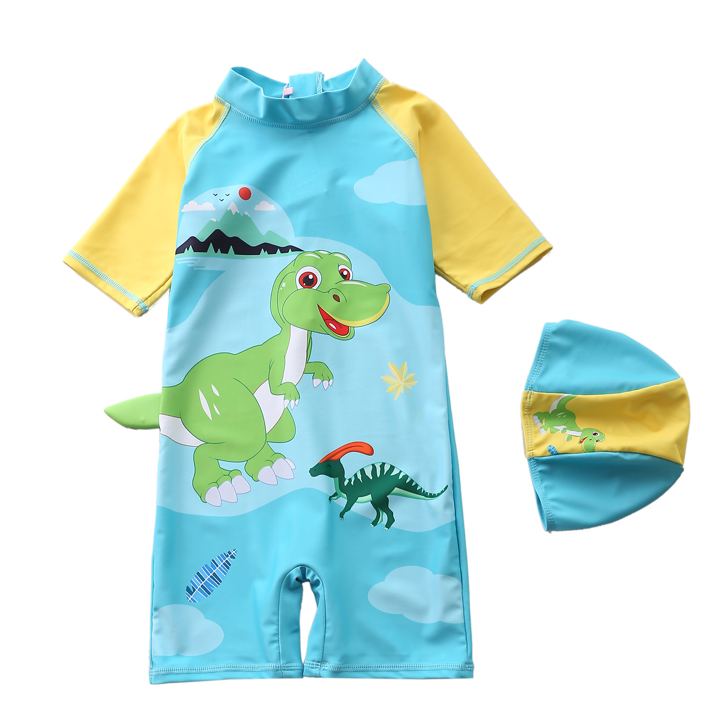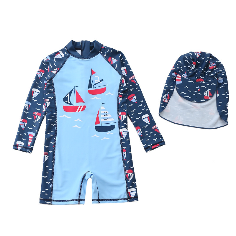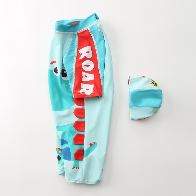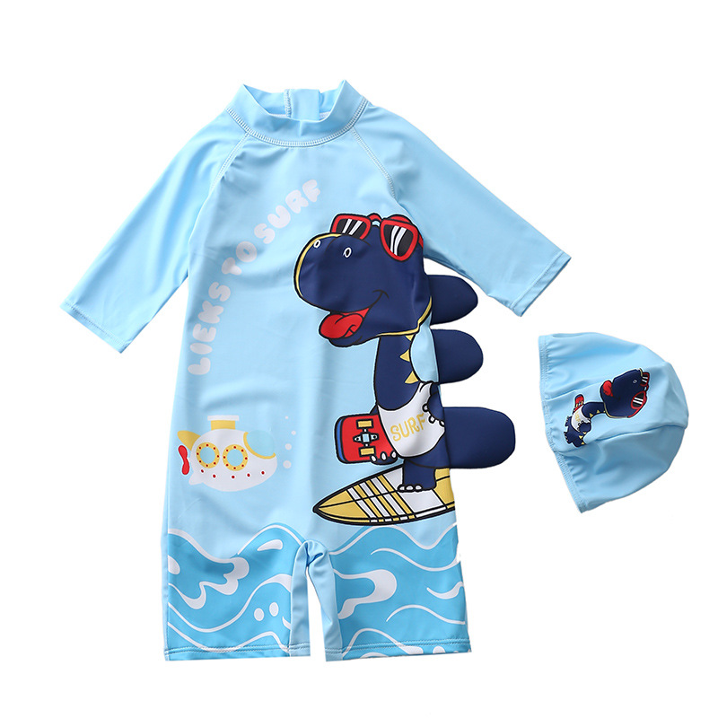어린이 수영복 소년의 원피스 수영복 한국 공룡 후드 수영복 긴팔 비치 세트 온천 수영복