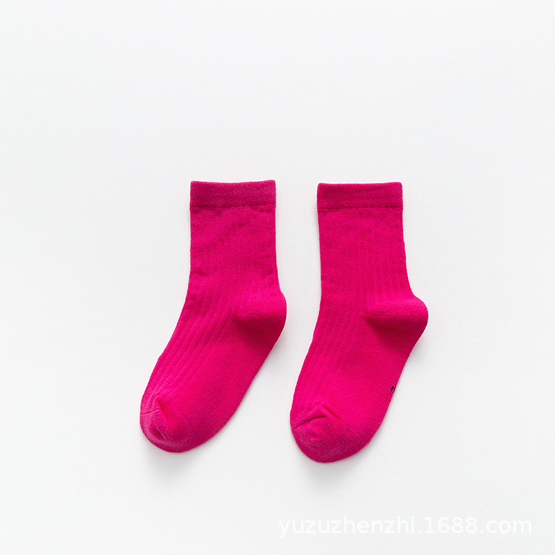가을 겨울 신작 어린이 양말 세로 줄무늬 양말 단색 빗질 트렌디 코튼 양말 캔디 컬러 어린이 종아리 양말