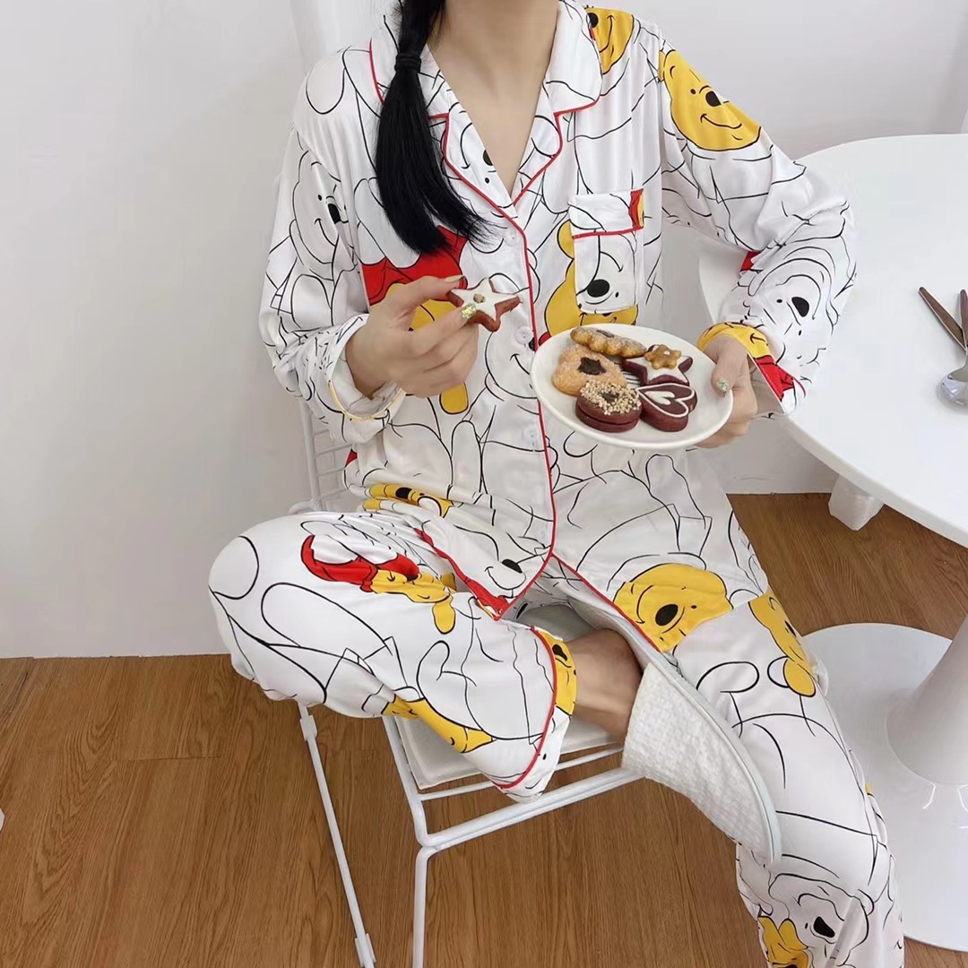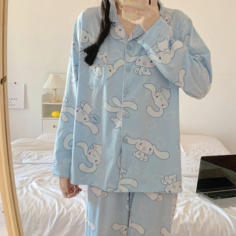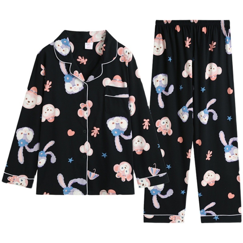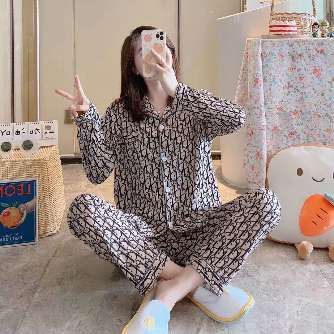 파자마 여성용 심플 스위트 사이버 연예인 긴팔 가디건 소녀의 한국식 얇은 가정복 투피스 세트스토어 가기