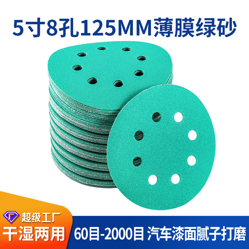 5 인치 8 구멍 125mm 무리는 사포 공기 밀 폴리 에스테르 필름 필름 자체 접착 녹색 모래 다시 벨벳 디스크 사포스토어 가기