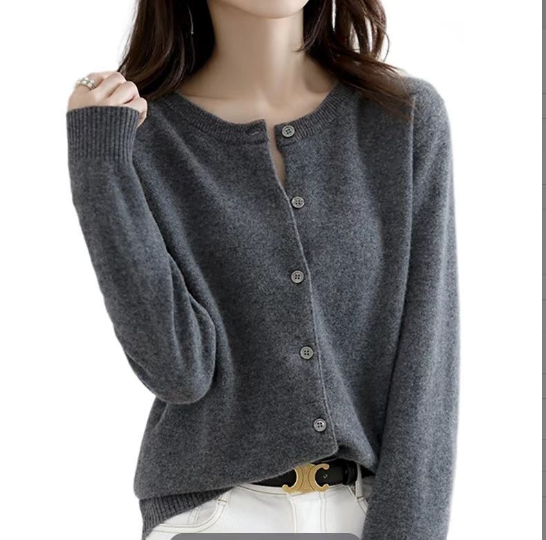 2025 봄, 가을 새로운 한국 스타일 카디건 솔리드 컬러 라운드 넥 싱글 브레스트 니트 스웨터 카멜 컬러 바닥 셔츠 여성 자켓