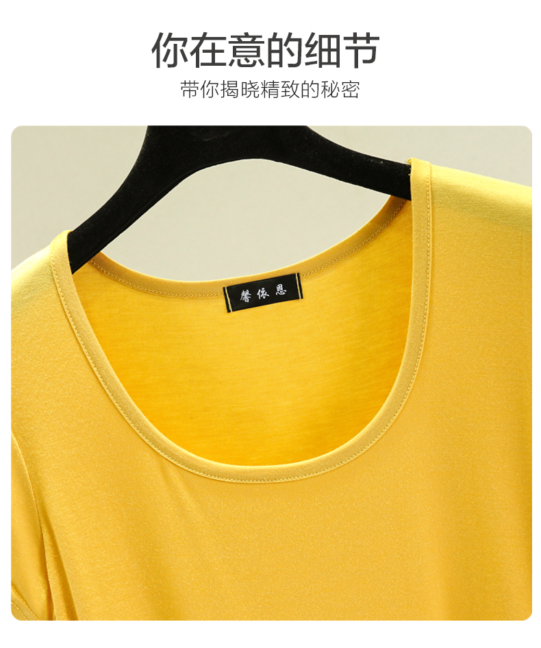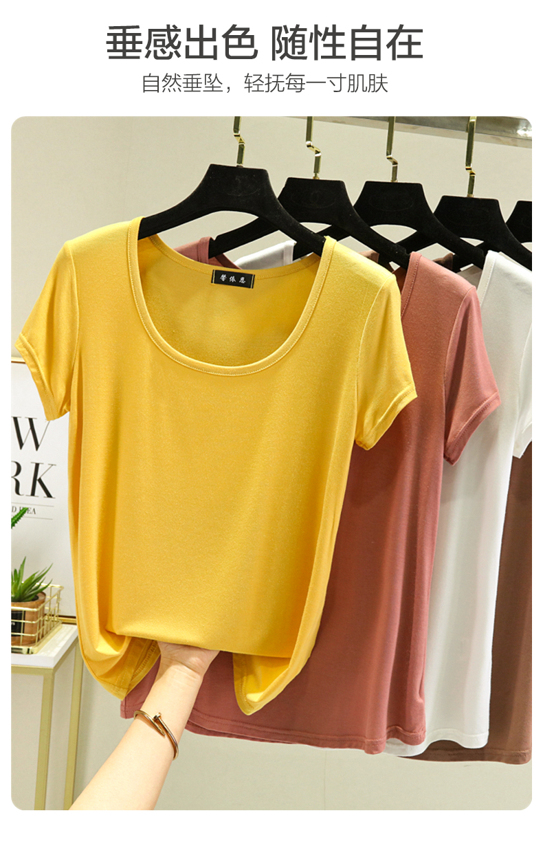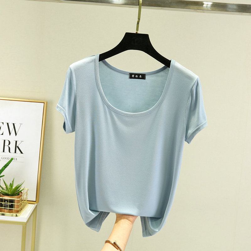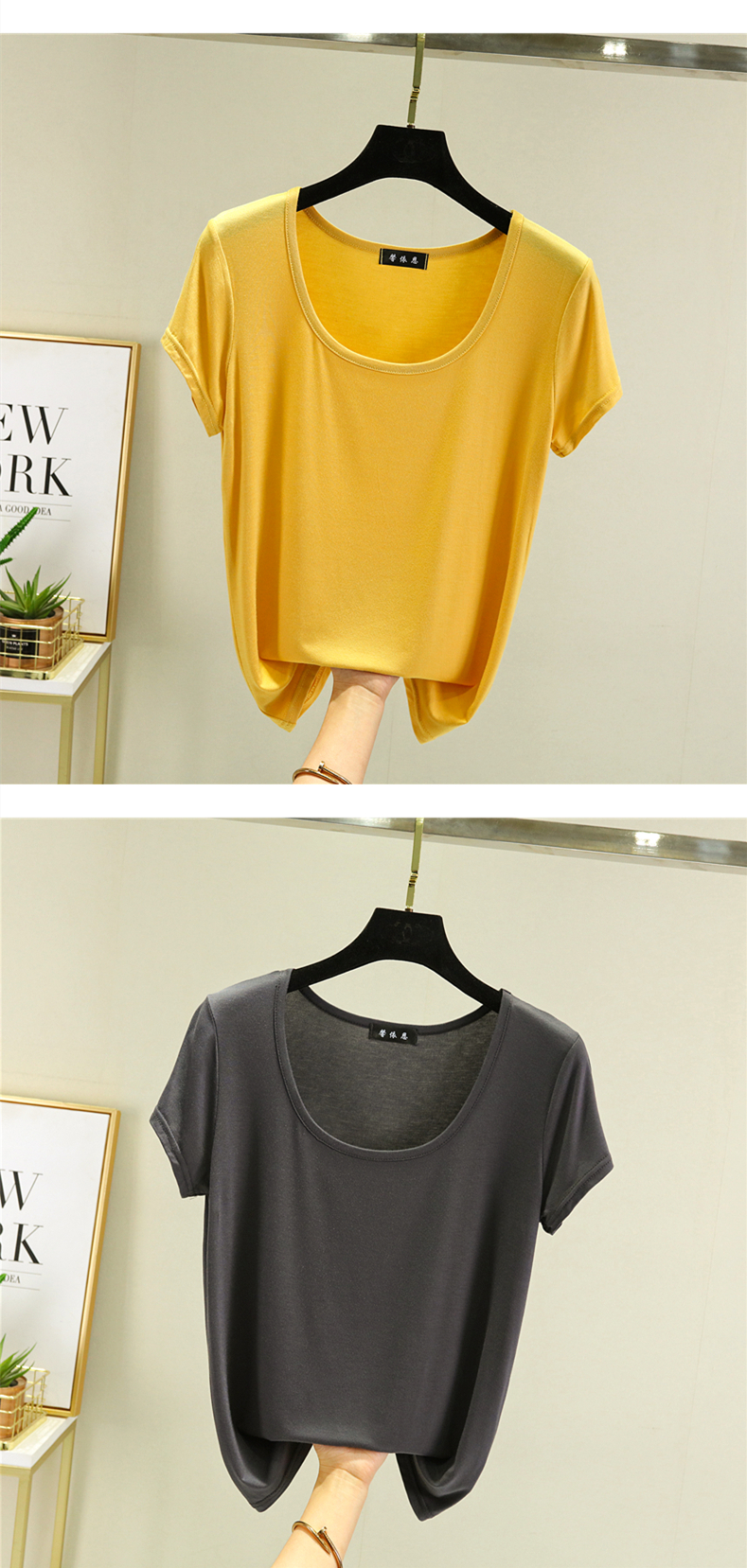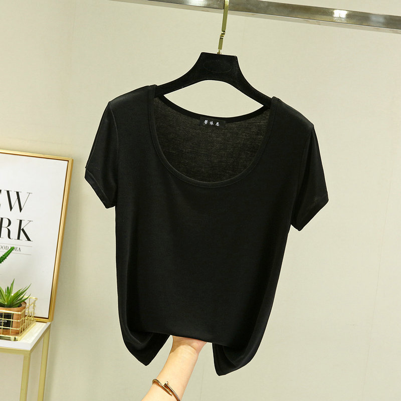 여름 단색 모달 U-넥 반팔 티셔츠 여성용 플러스 사이즈 이너베이스 셔츠 얇은 겉옷 한국 스타일 루즈한 탑스토어 가기