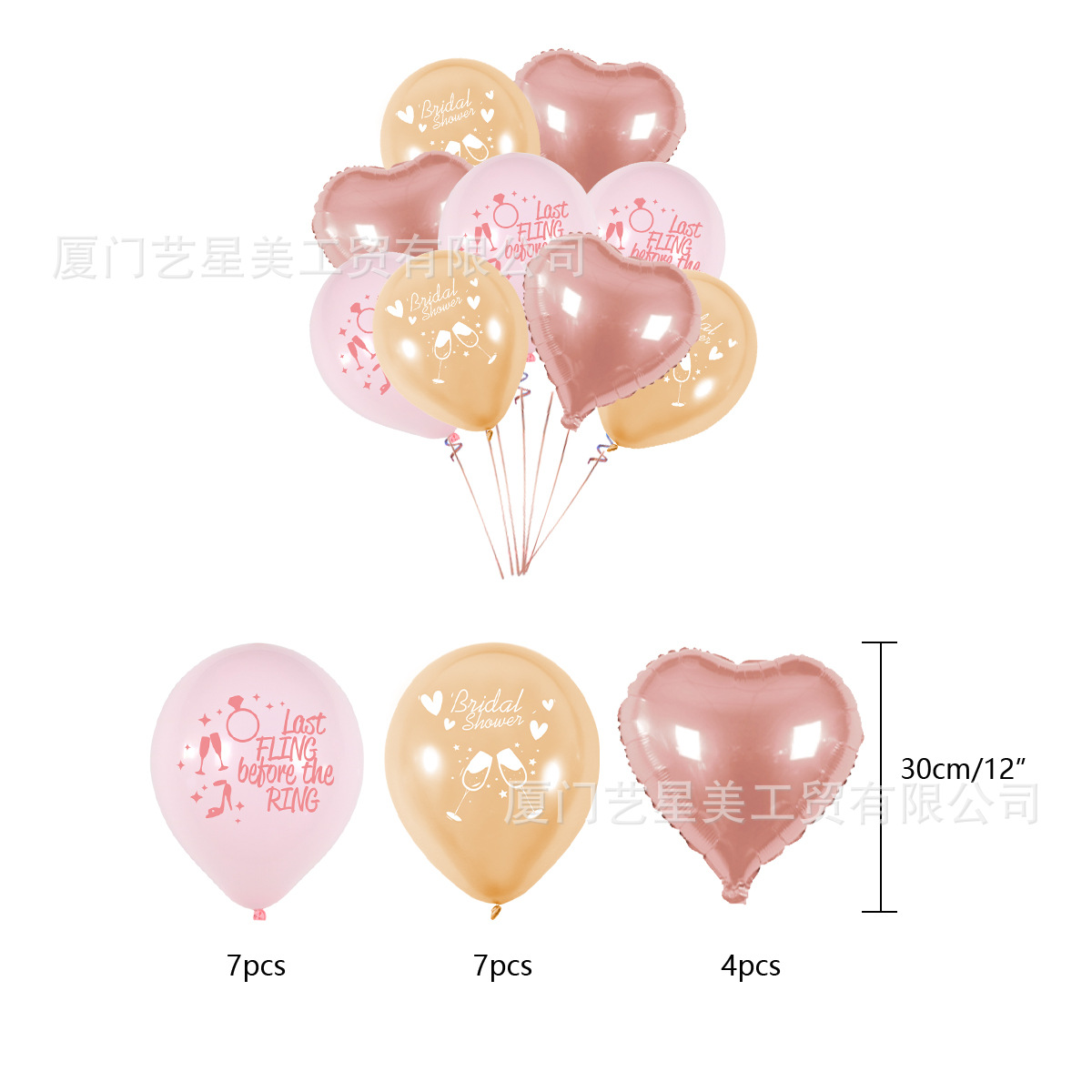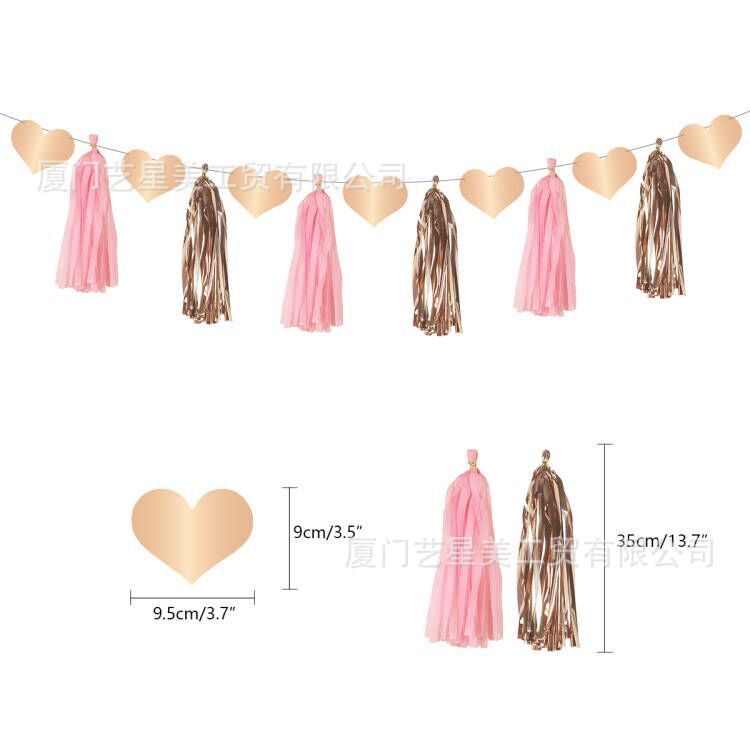 套装4:1条拉旗(金卡)+1个大插排(金卡)+12个小插旗(金卡)+14个气球+4个爱心铝膜气球+6个卡片纸花