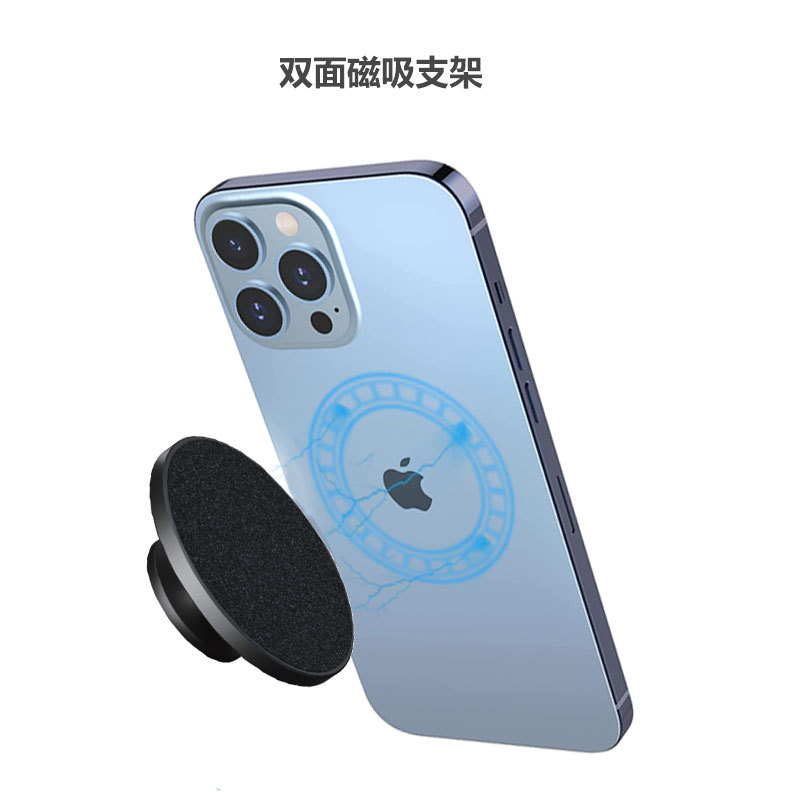 注:iphone12以上机型可直接吸附无需引磁片,12以下机型与安卓机型都需要配引磁片才可以使用磁吸支架