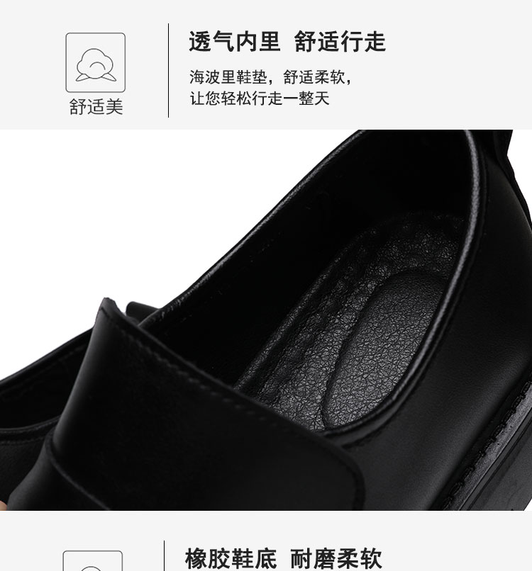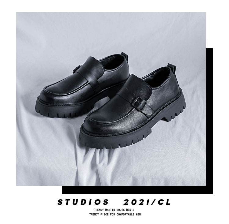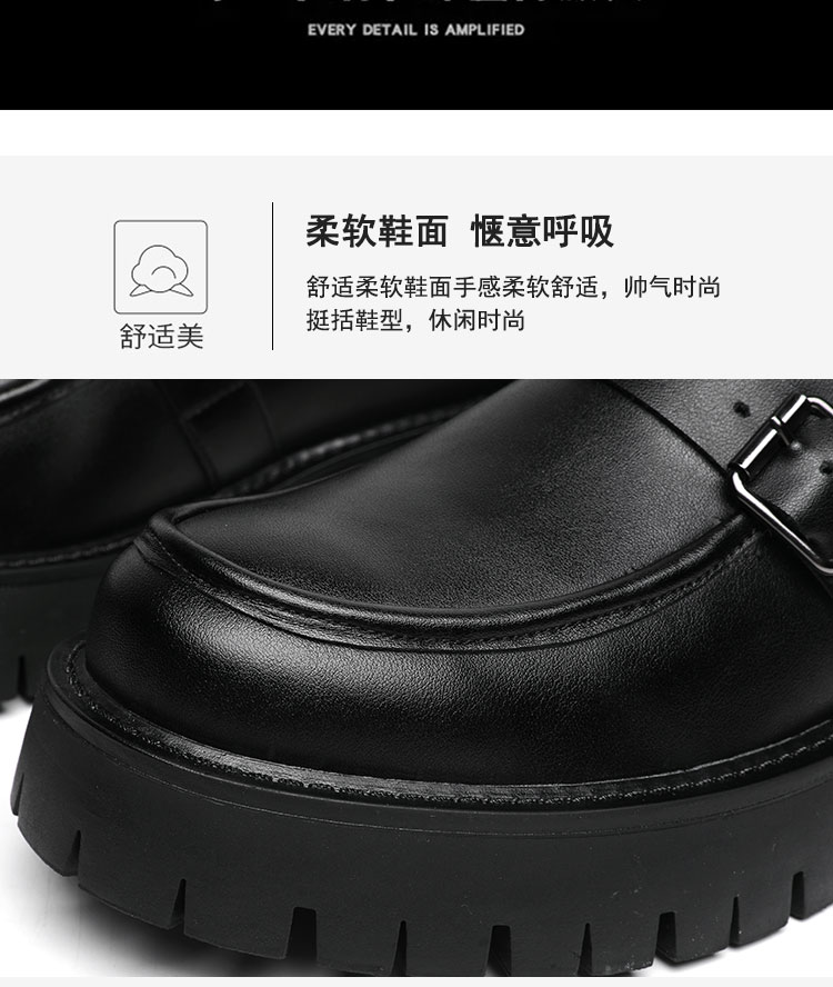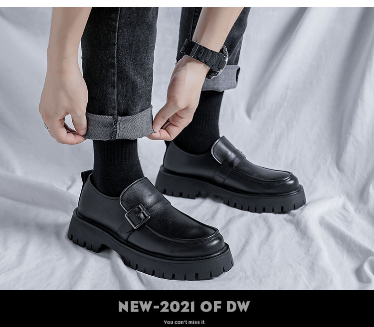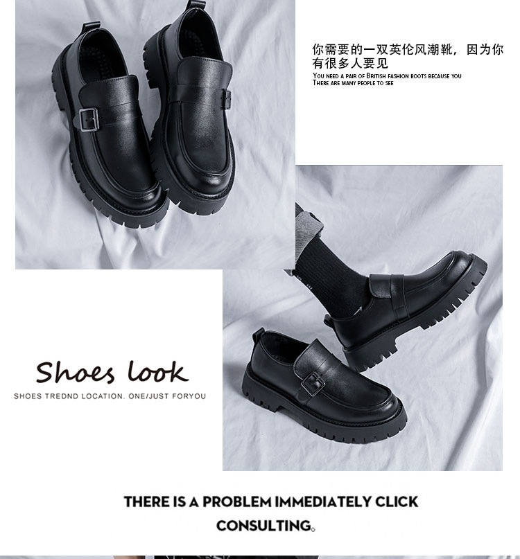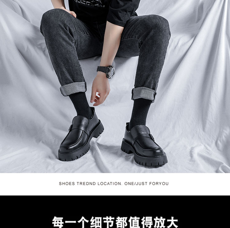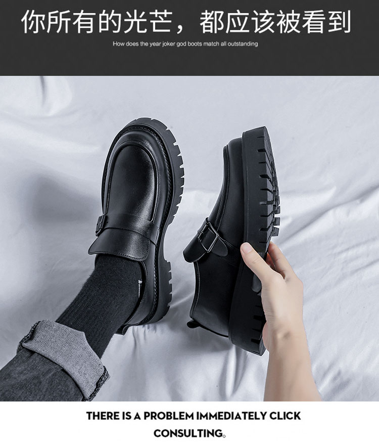 春季休闲大头皮鞋男厚底乐福鞋英伦内增高透气黑色一脚蹬懒人潮鞋
