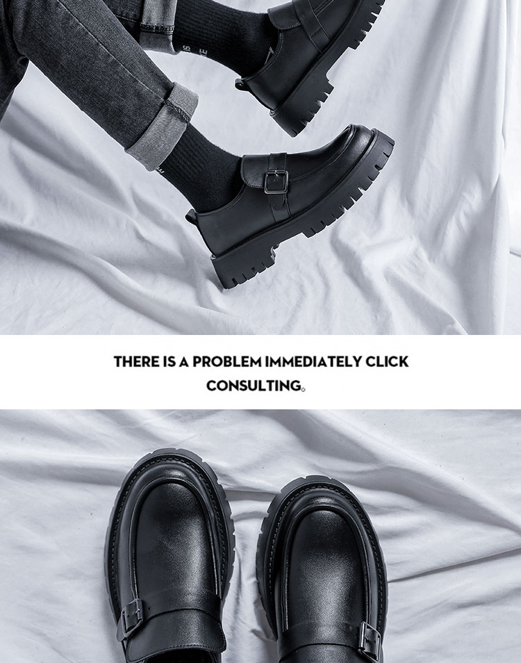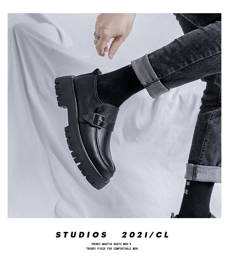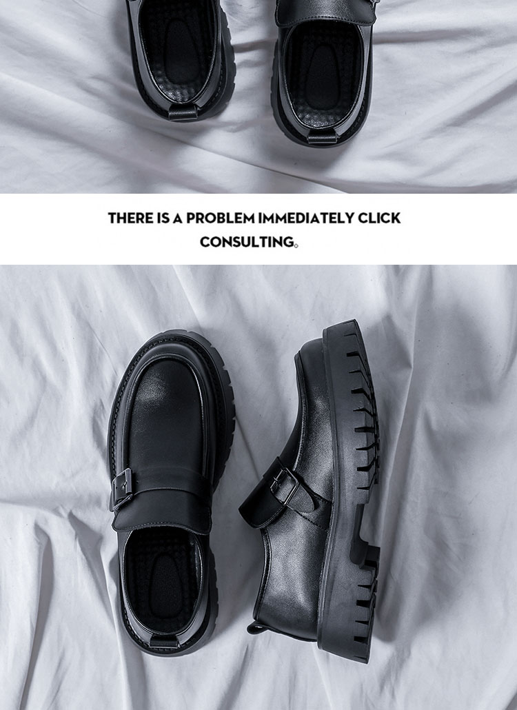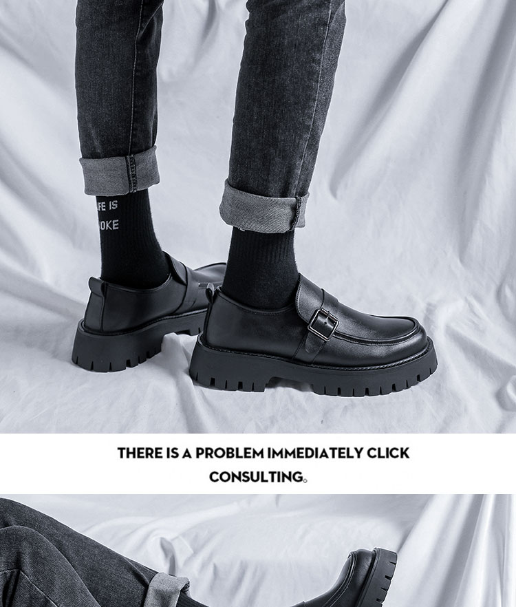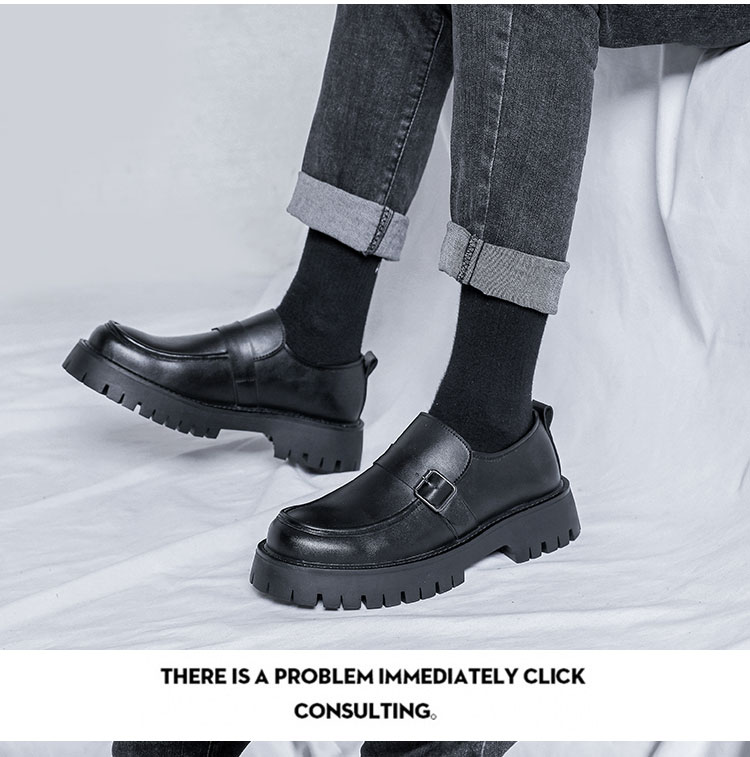 봄 캐주얼 엄지 발가락 가죽 신발 남성용 두꺼운 밑창 로퍼 영국 높이 증가 통기성 블랙 슬립온 게으른 유행 신발스토어 가기