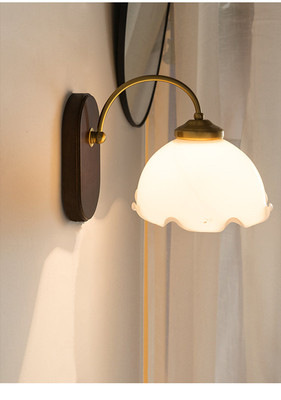 스타일 단단한 나무 벽 램프 일본 스타일 유리 간단한 침대 옆 램프 통로 램프 미국 스타일 침실 북유럽 스타일 복고풍 벽 램프스토어 가기