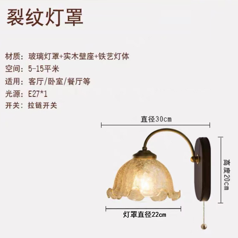스타일 단단한 나무 벽 램프 일본 스타일 유리 간단한 침대 옆 램프 통로 램프 미국 스타일 침실 북유럽 스타일 복고풍 벽 램프