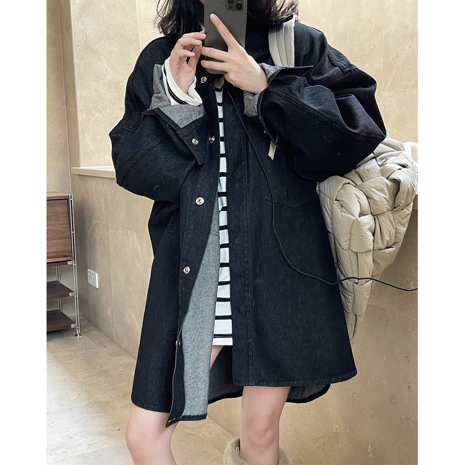 블로거 스타일 옷깃 데님 셔츠 윈드 브레이커 느슨한 프로필 캐주얼 슬림 룩 재킷 여성의 가을 새로운 한국 스타일스토어 가기
