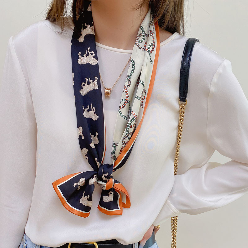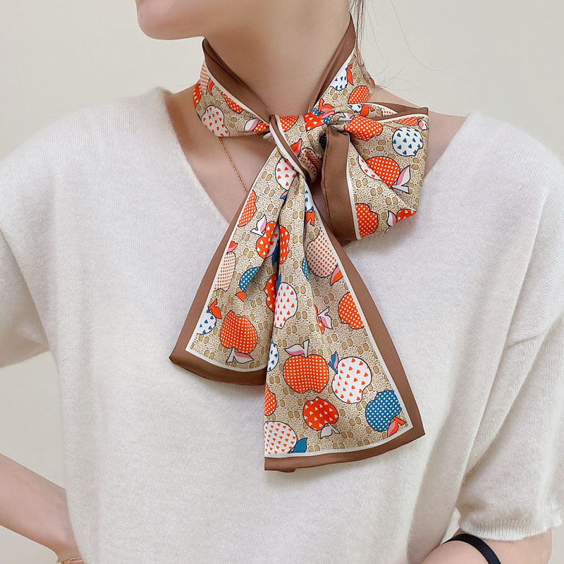 실크 스카프 여성의 작은 긴 모든 일치 봄과 가을 패션 세련된 애플 실크 스카프 전문 스튜어디스 한국 스카프스토어 가기