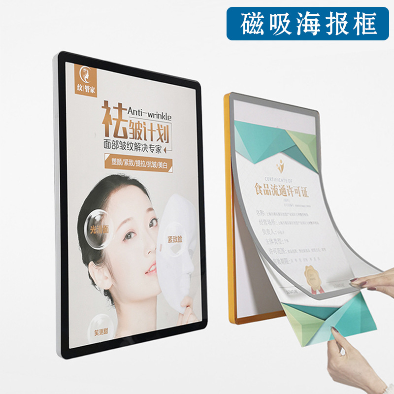 마그네틱 포스터 프레임 도매 비 천공 둥근 알루미늄 합금 광고 포스터 프레임 엘리베이터 광고 프레임 사용자 정의스토어 가기