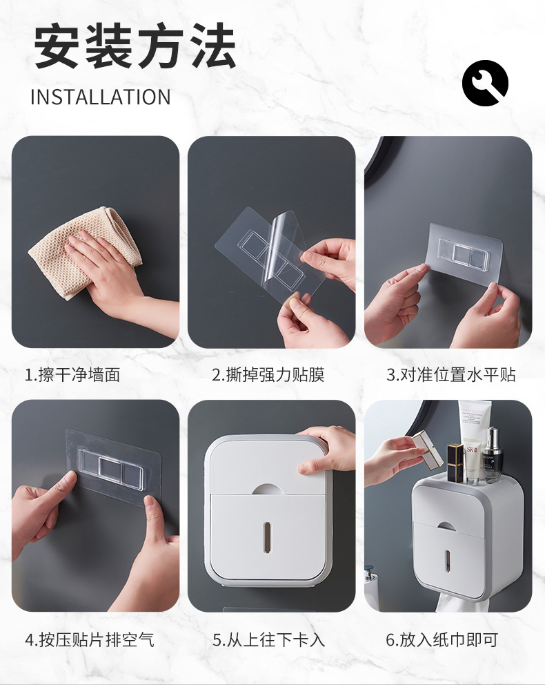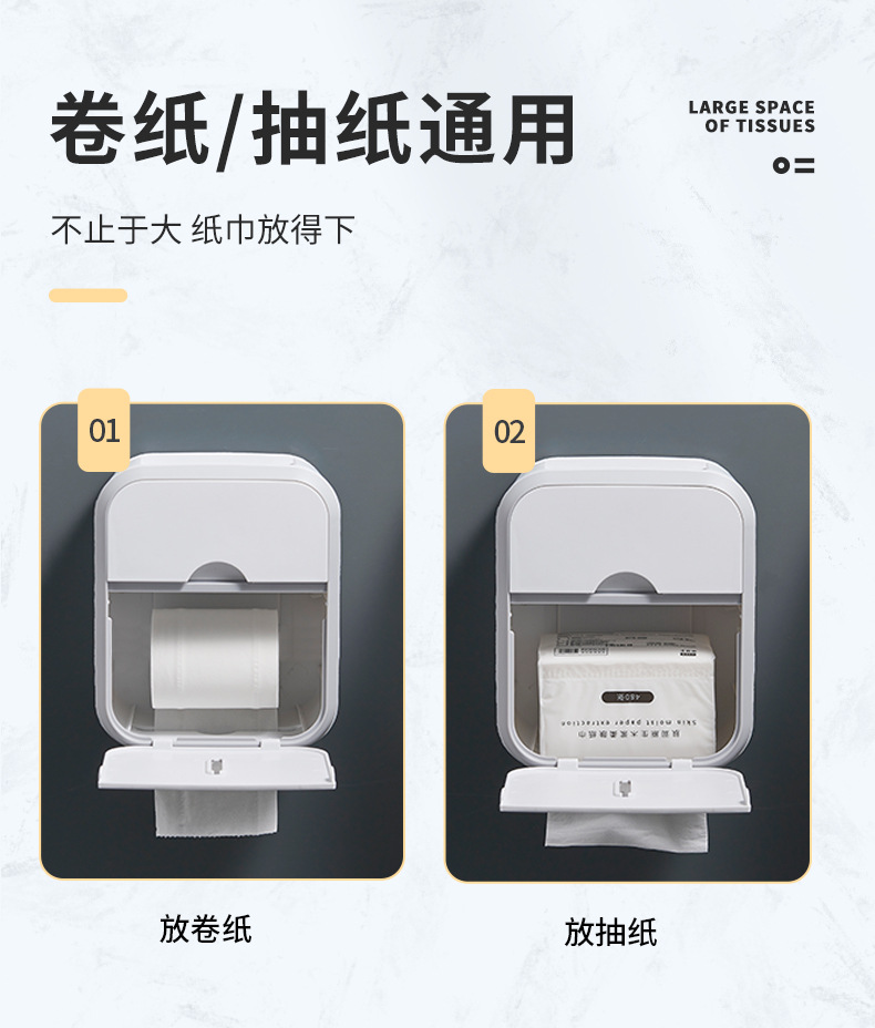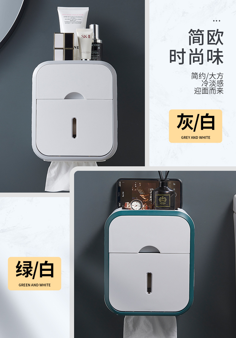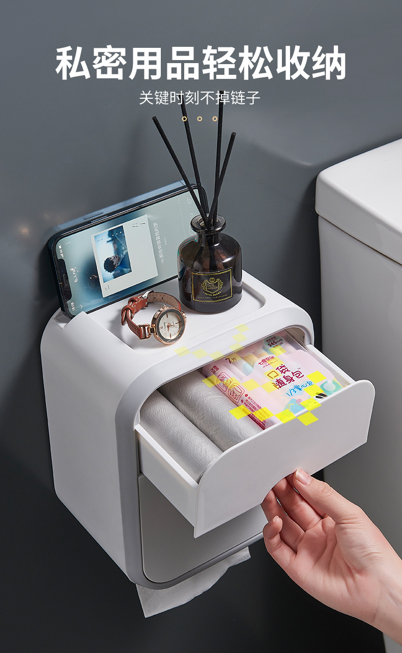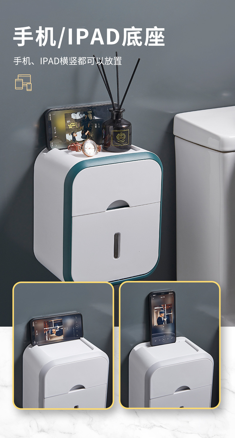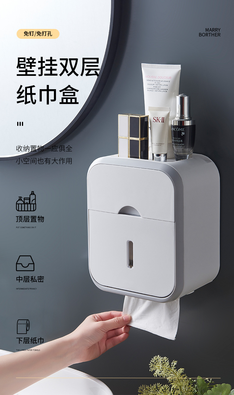 욕실 이중층 조직 상자 벽걸이 형 펀치없는 욕실 벽 저장 상자 저장 선반 공간 절약