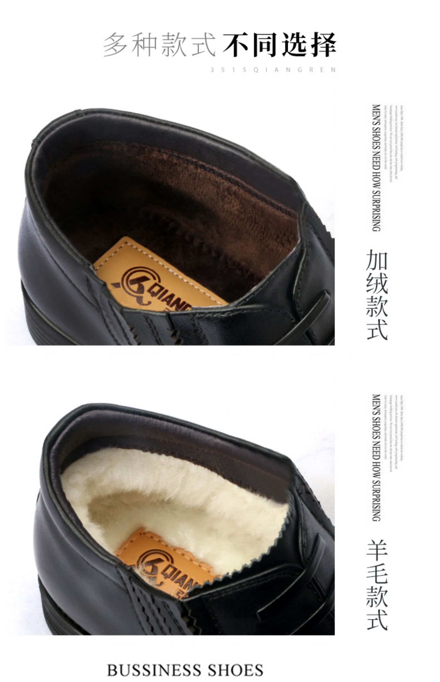 3515 Jihua 가죽 신발 남자의 겨울 따뜻한 기모 면 가죽 신발 소가죽 울 비즈니스 원피스 신발 남자의 모피 신발