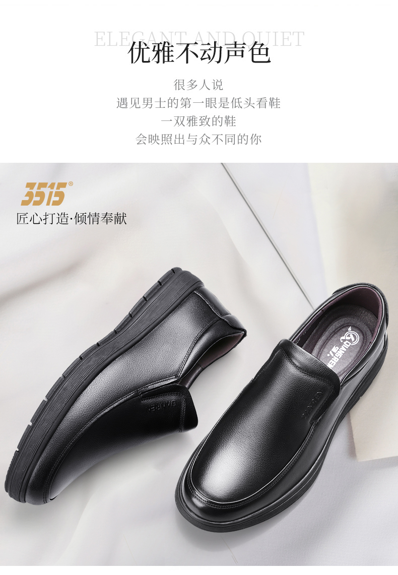 Jihua 3515 가죽 신발 남성용 봄과 가을 정품 가죽 비즈니스 캐주얼 신발 세트 발 중년 및 노인 아빠 신발 부드러운 단독 아버지 신발