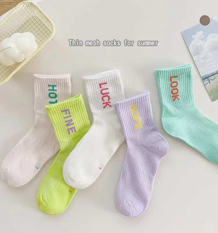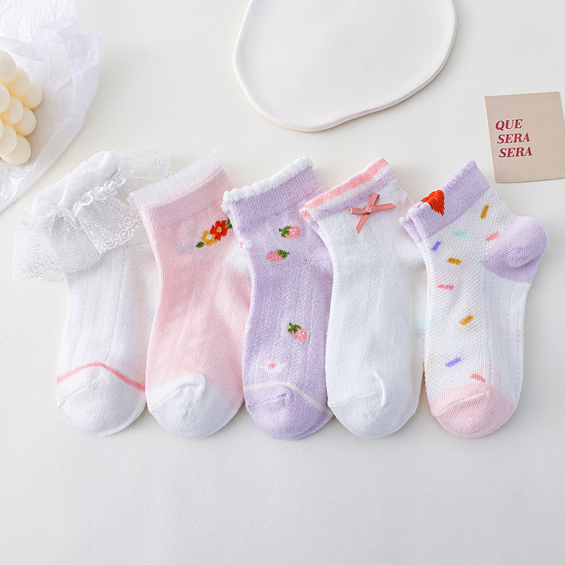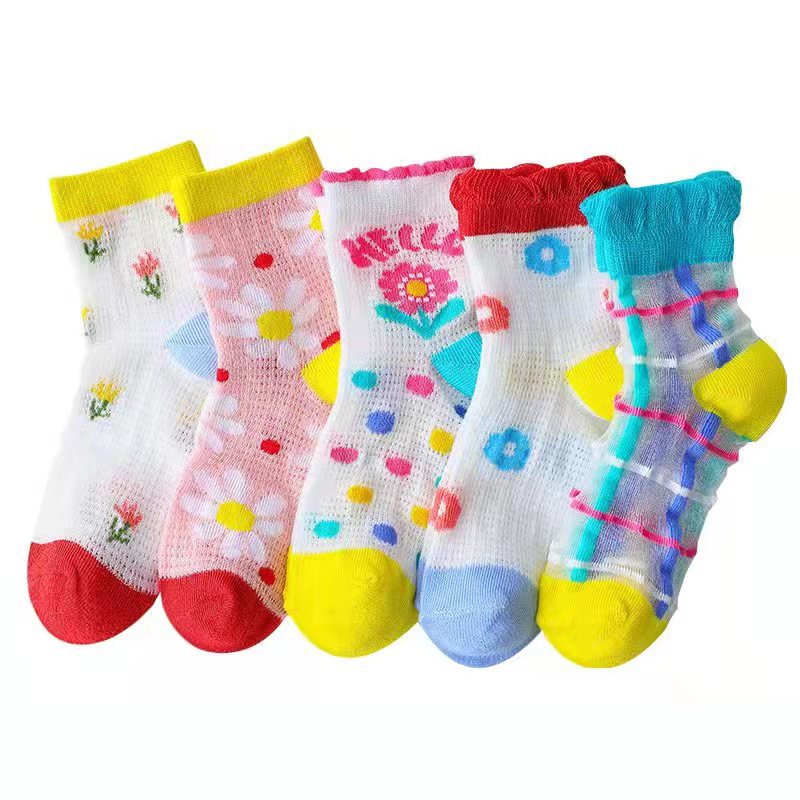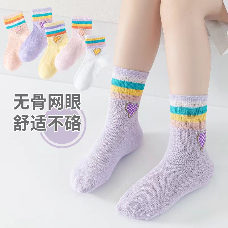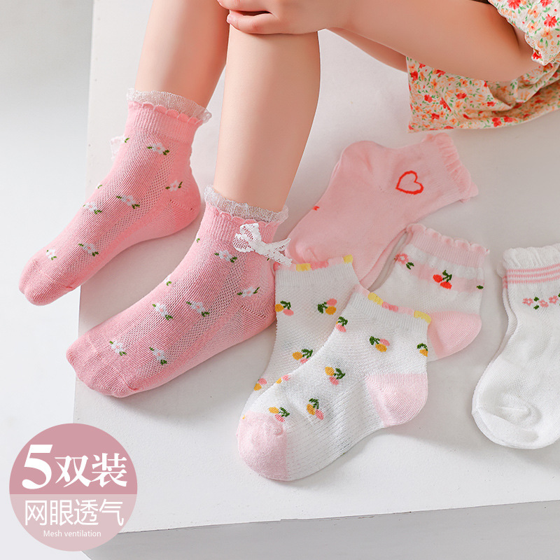 바이 누오 어린이 양말 봄과 여름 얇은면 미드 튜브 만화 트렌드 귀여운 아기 짧은 튜브 메쉬 양말 도매