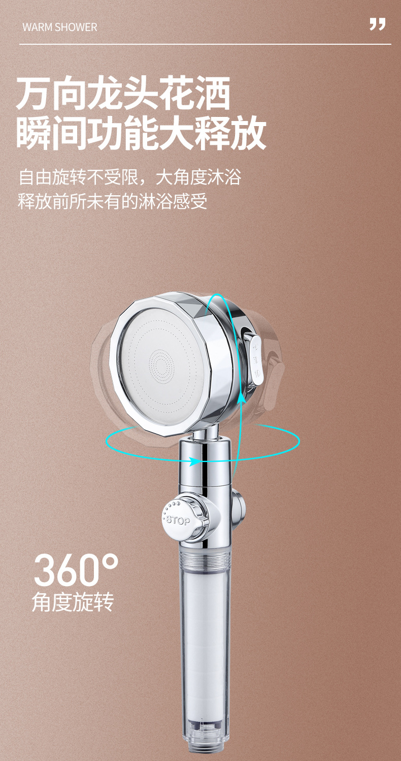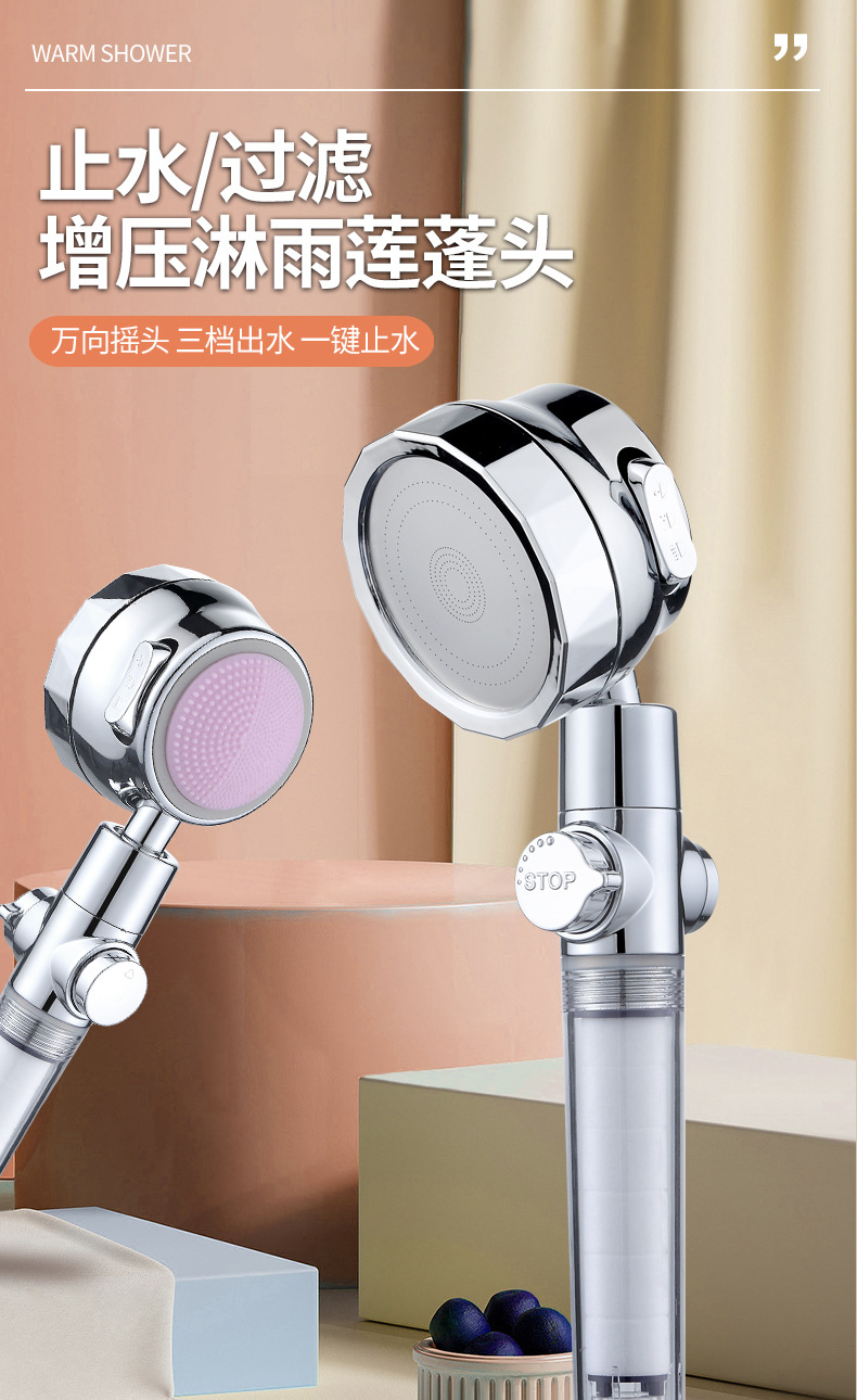 [재고 도매] 조절 가능한 흐름 크기 물 정지 필터 보편적 인 흔들림 헤드 강판 가압 욕실 샤워스토어 가기