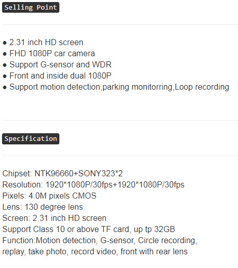렌즈 자동차 DVD 카메라로 레코더 듀얼 렌즈 FHD 1080P HD 전면 및 후면 교차 폭발스토어 가기