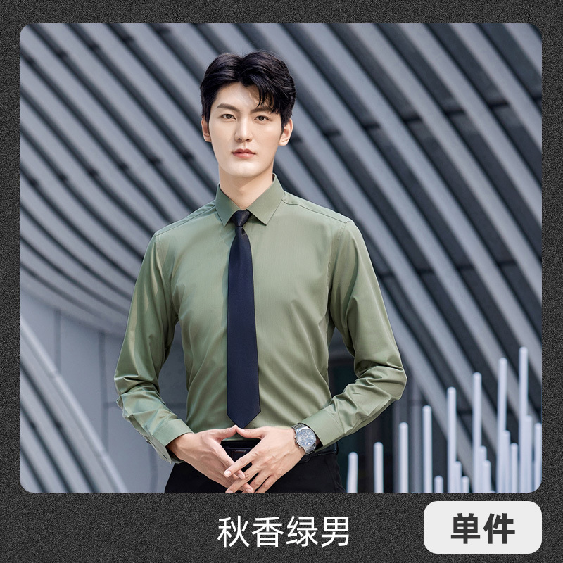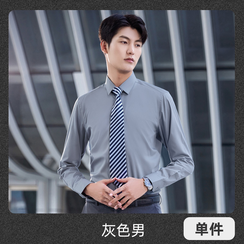 대나무 섬유 고급 남자의 회색 비즈니스 셔츠 봄과 가을 전문 원피스 작업복 남자와 여자의 같은 긴 소매 셔츠스토어 가기