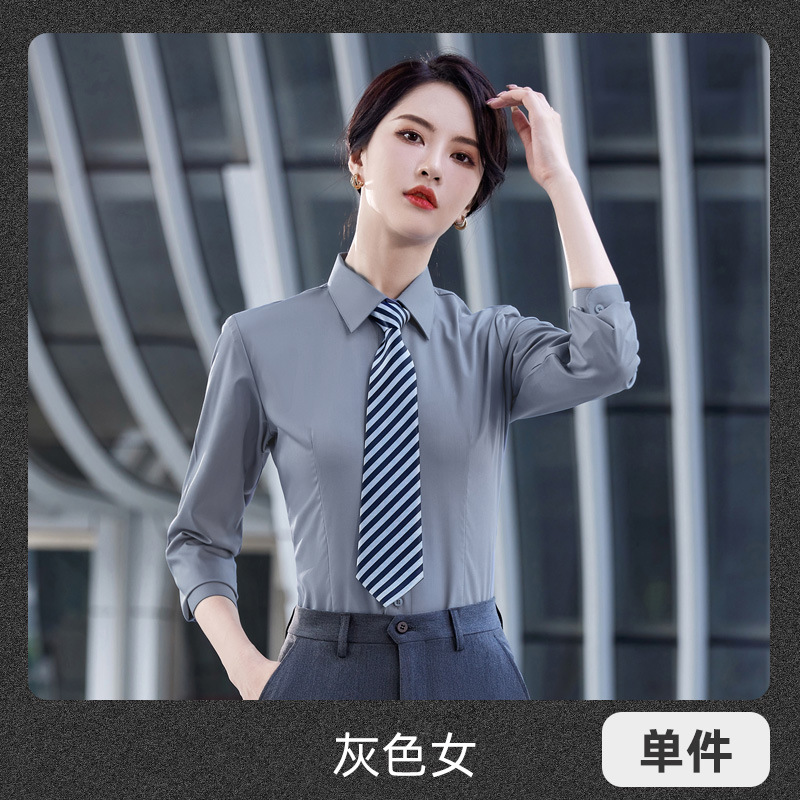 대나무 섬유 고급 남자의 회색 비즈니스 셔츠 봄과 가을 전문 원피스 작업복 남자와 여자의 같은 긴 소매 셔츠