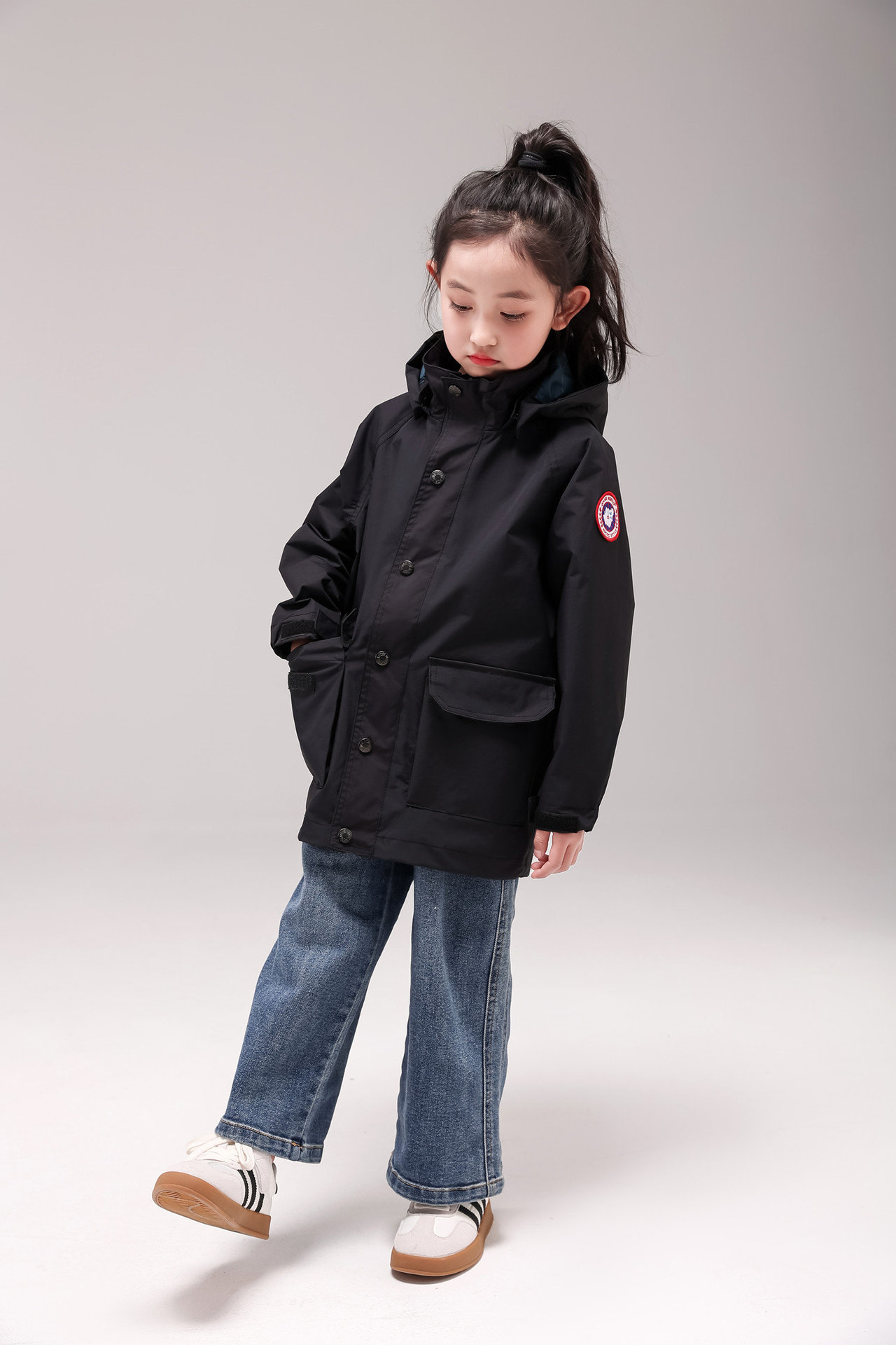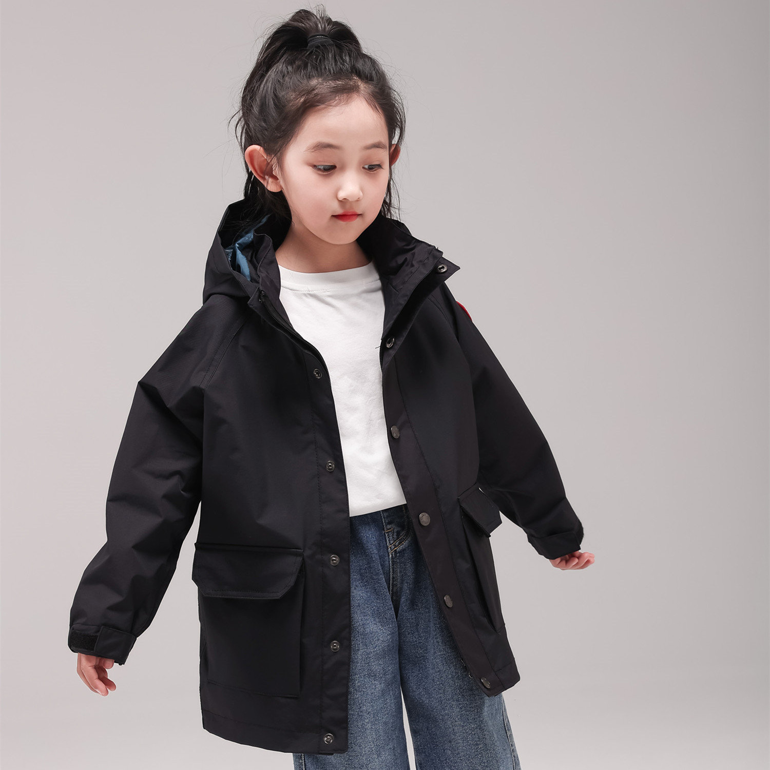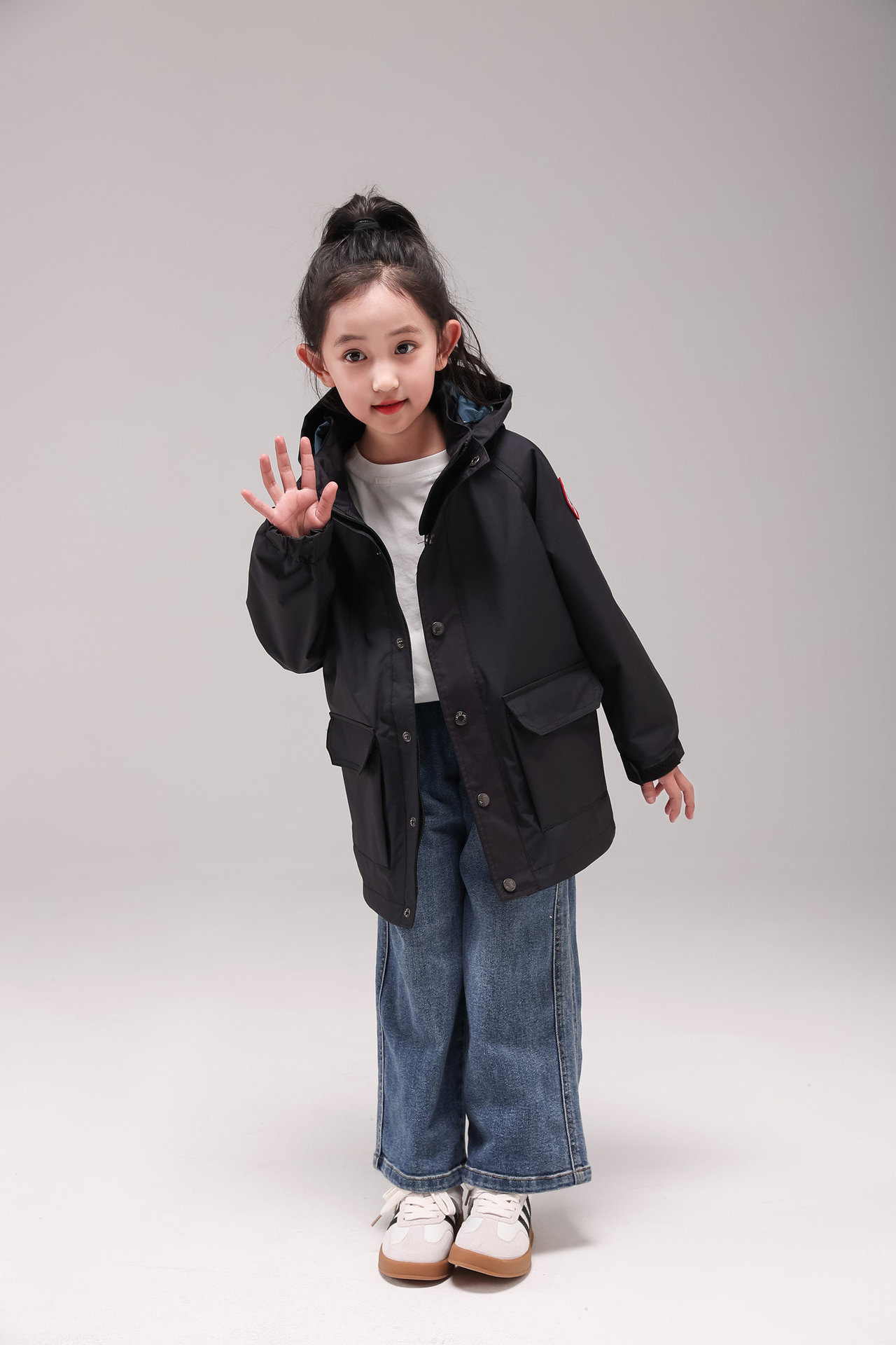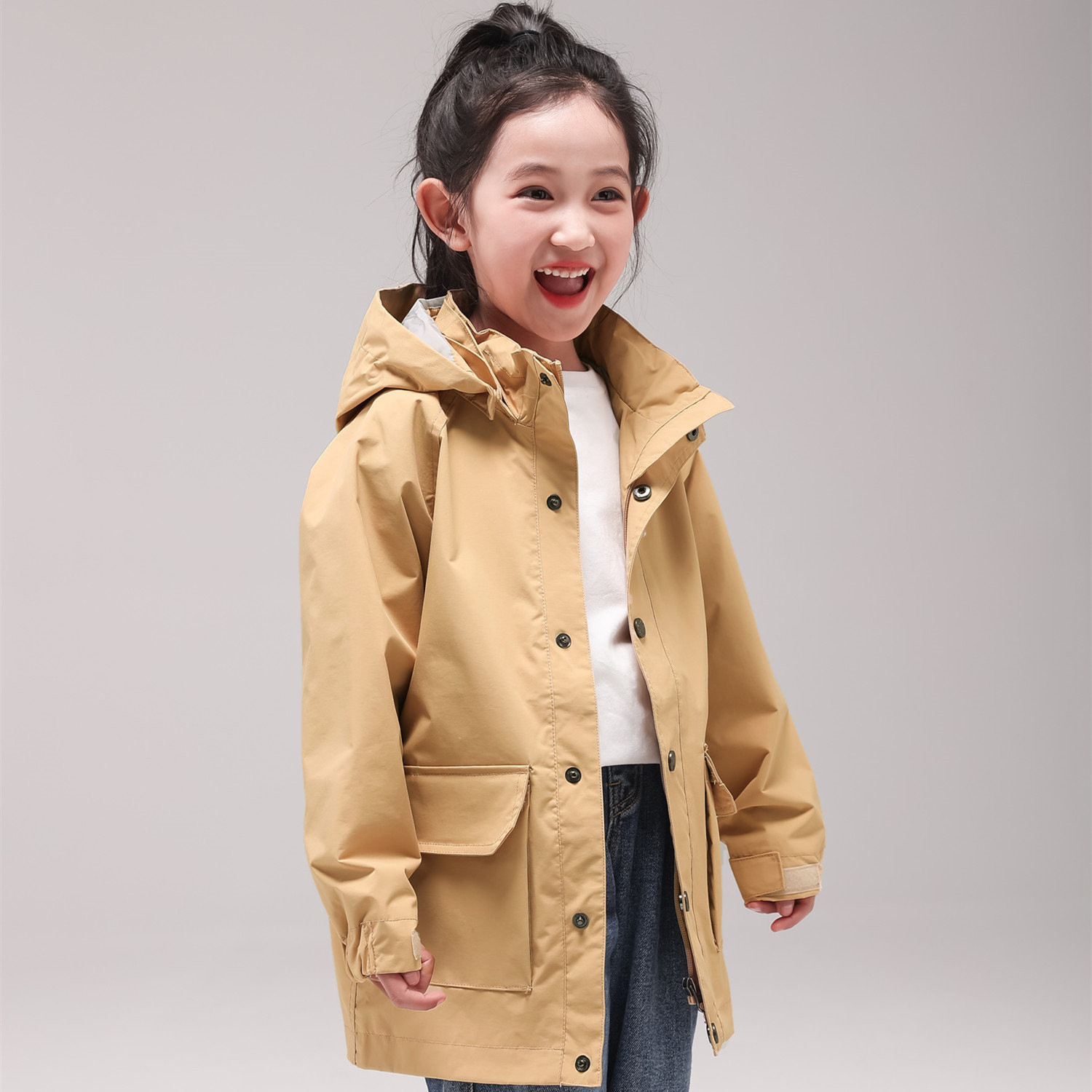 가을 2023 새로운 남여 공용 소년 소녀 어린이 후드 중간 길이 윈드 브레이커 재킷 러쉬 의류스토어 가기