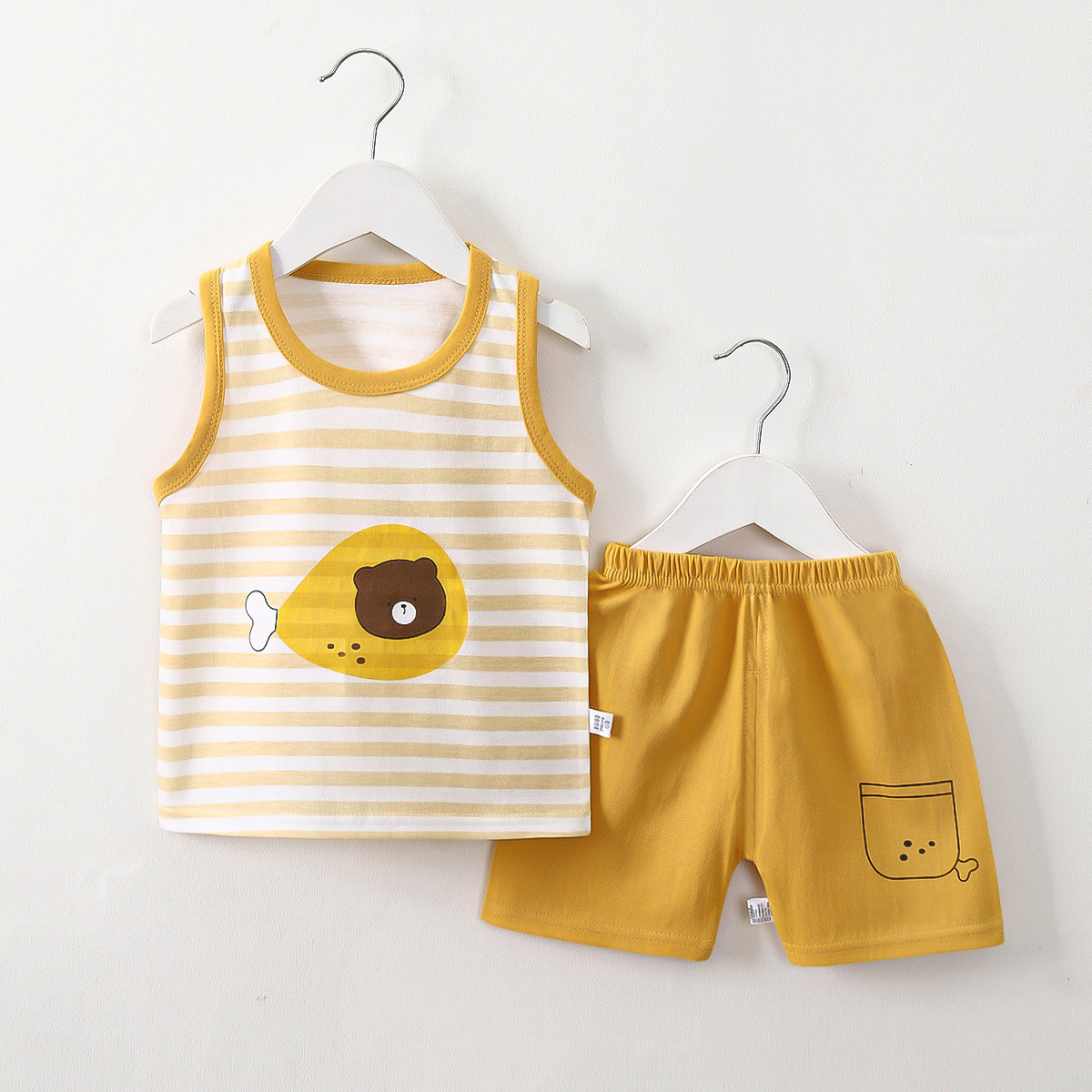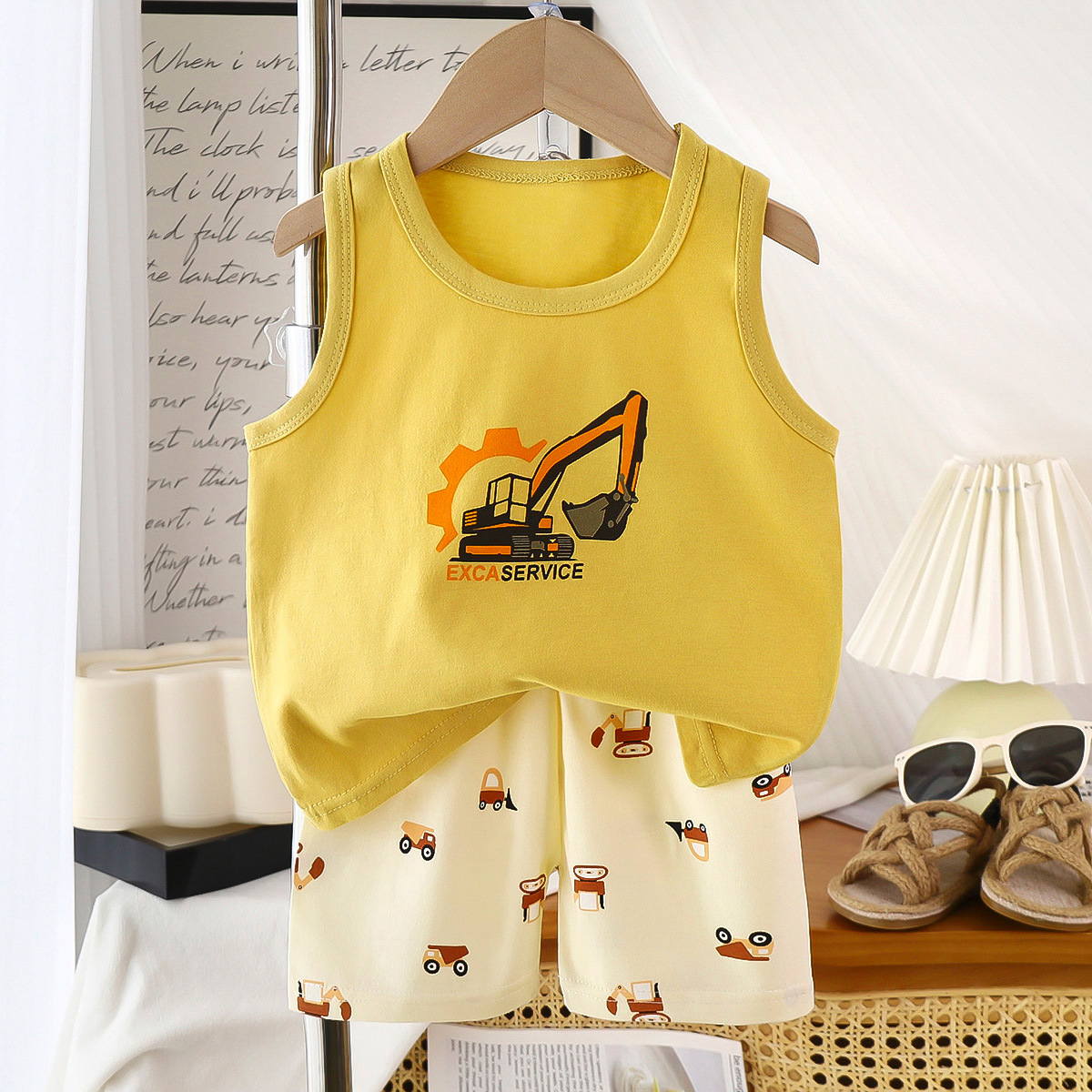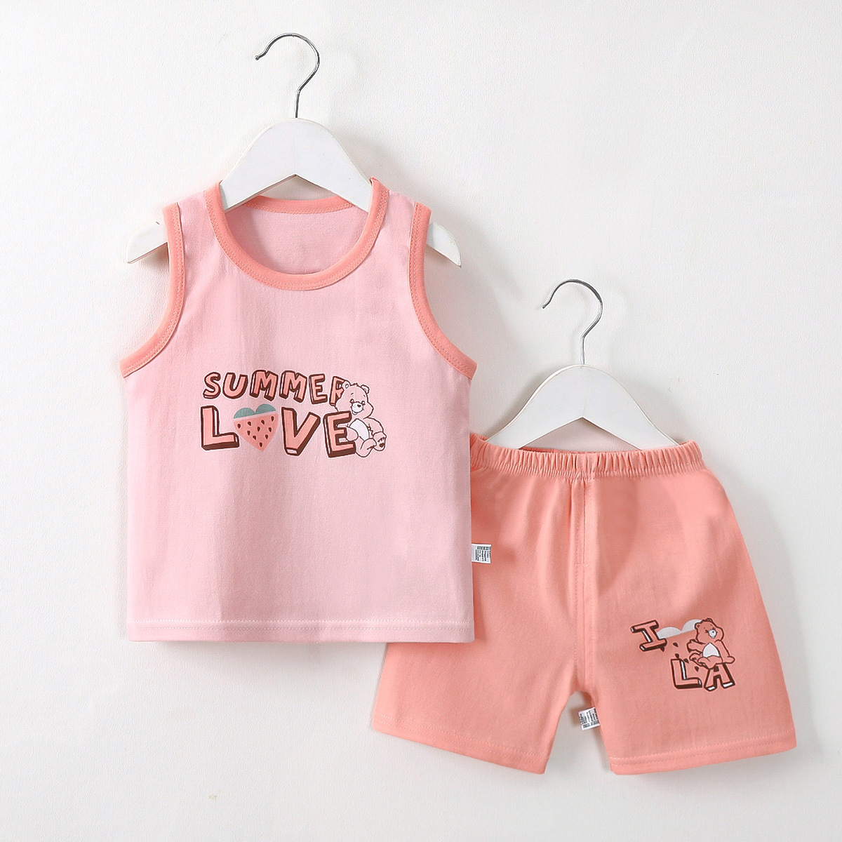 아동 조끼 세트 반팔 순면 여름 2025 소년 민소매 의류 아기 의류 도매 순면 통기성스토어 가기
