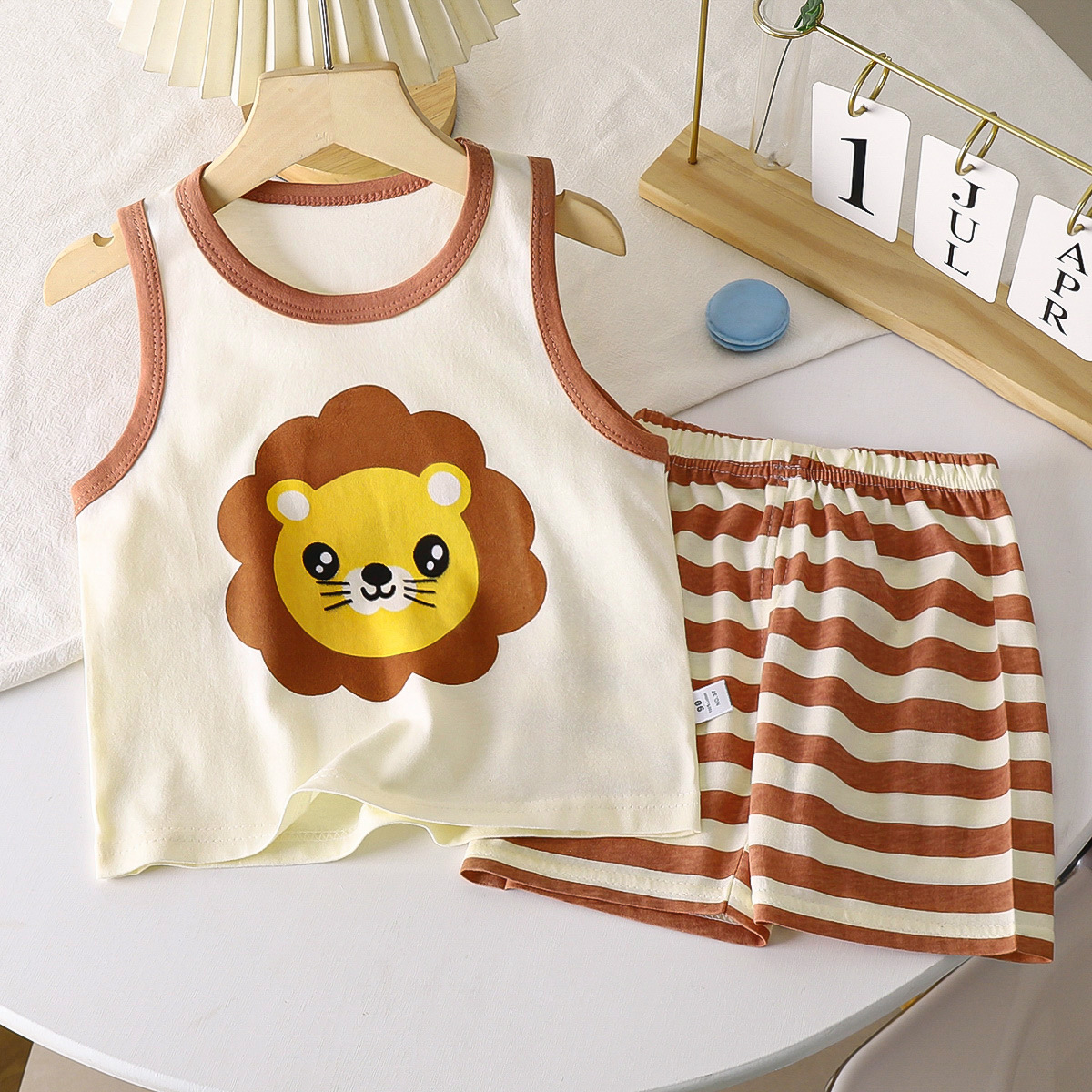 아동 조끼 세트 반팔 순면 여름 2025 소년 민소매 의류 아기 의류 도매 순면 통기성