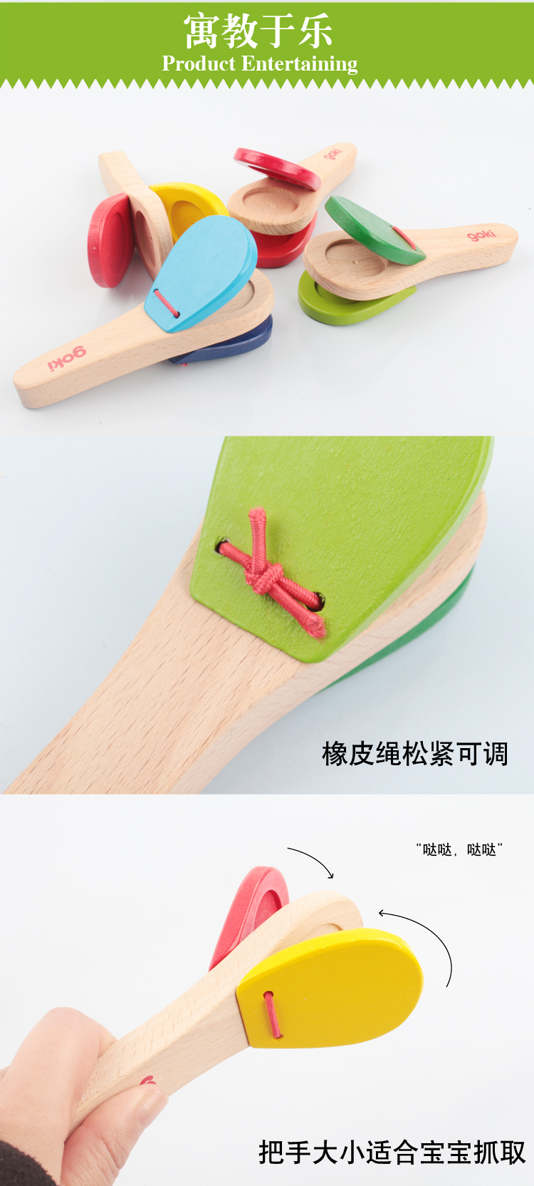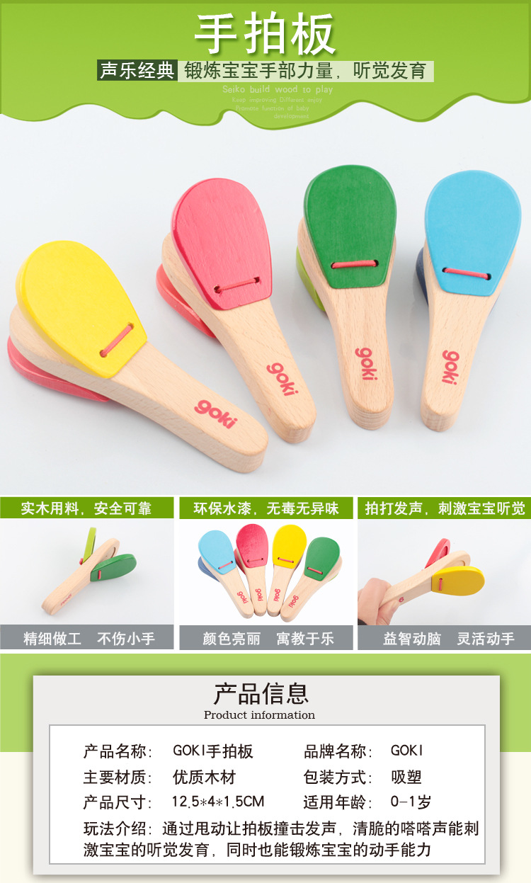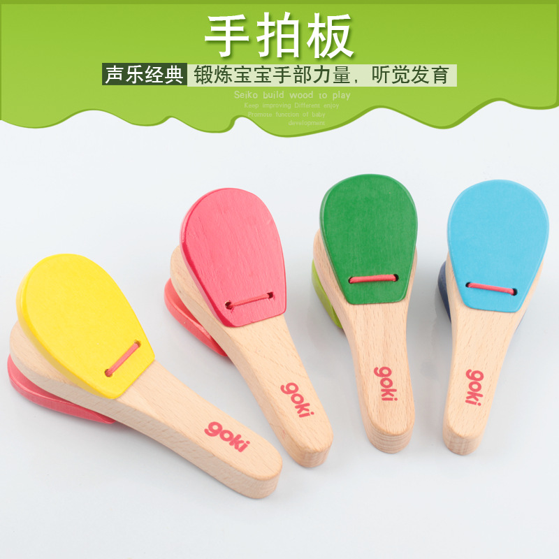 타악기 아기 손 래틀 링 보드 솔리드 우드 베이비 핸들 래틀 링 보드 어린이 음악 장난감스토어 가기