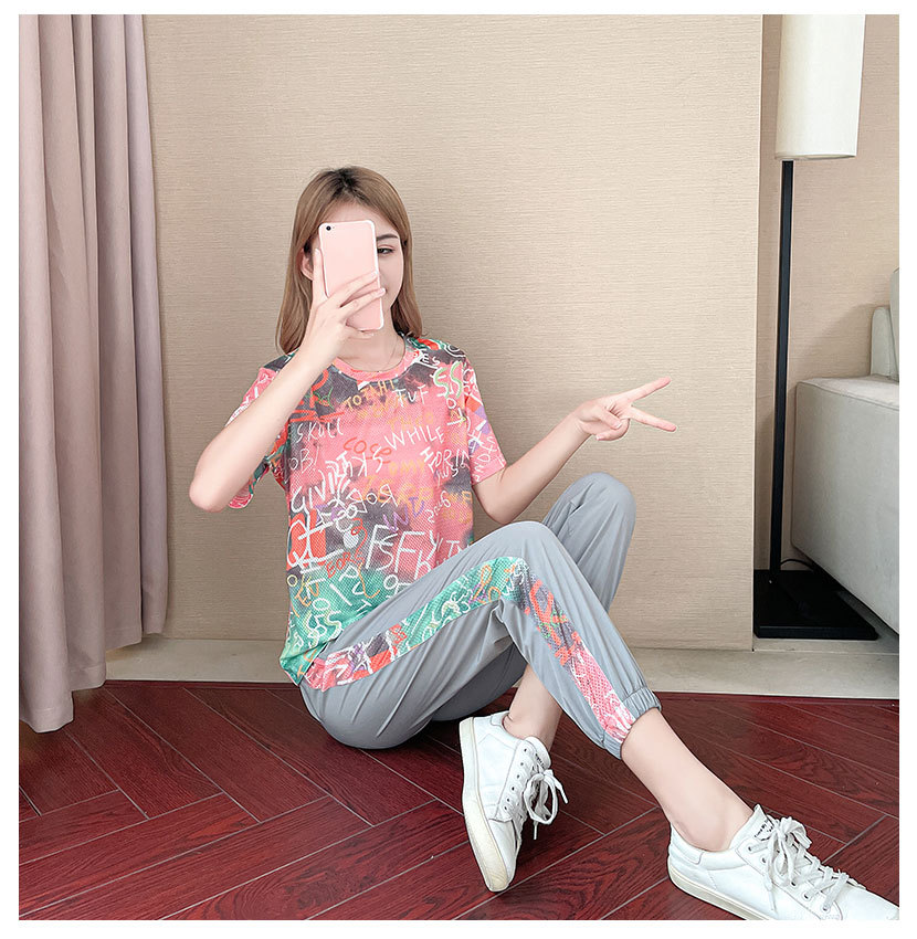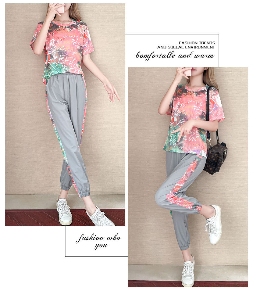 스포츠 세트 여성용 2022 여름 새로운 패션 속건 여름 반팔 아이스 실크 캐주얼웨어 연령 감소 투피스 세트