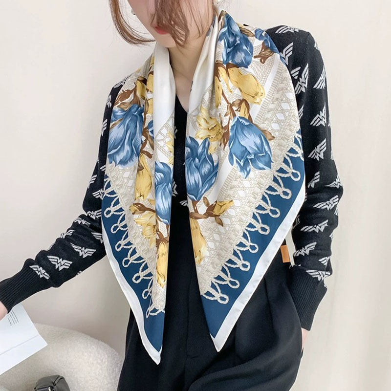 능직 실크 스카프 모조 실크 대형 스퀘어 스카프 봄과 가을 라이브 판매 뜨거운 인터넷 연예인 양면 인쇄 90 스카프 장식 숄