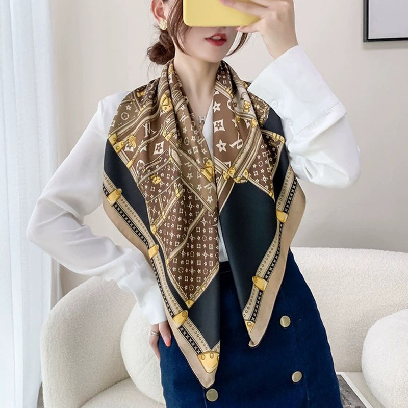 90cm 대형 스퀘어 스카프 봄과 가을 새로운 Houndstooth 인쇄 실크 스카프 숄 장식 트릴 실크 스카프 인터넷 유명인스토어 가기