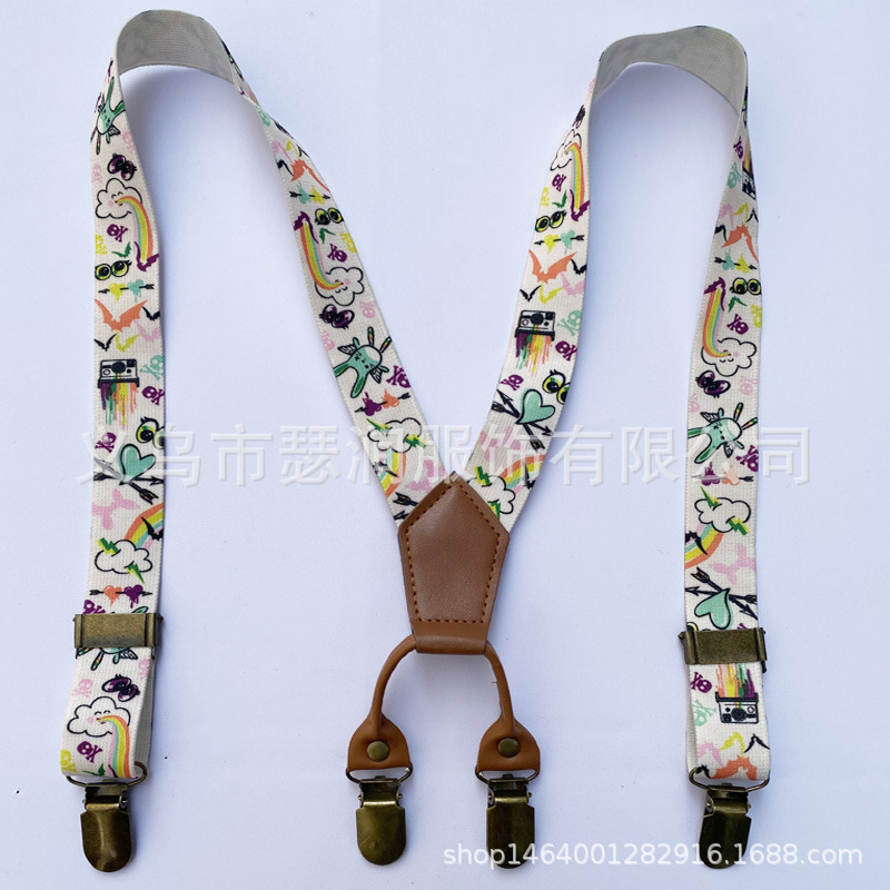 어린이 멜빵 바지 멜빵 클립 멜빵 스트랩 영국 스타일 리프팅 스트랩 탄성 리본 네 클립 남녀 공용 스트랩