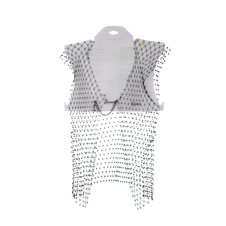 2022 스타일 블랙 메쉬 모조 다이아몬드 여성 최고의 쇼 나이트 바 섹시한 국경 간 전자 상거래 유럽과 미국 조끼스토어 가기