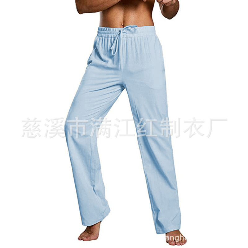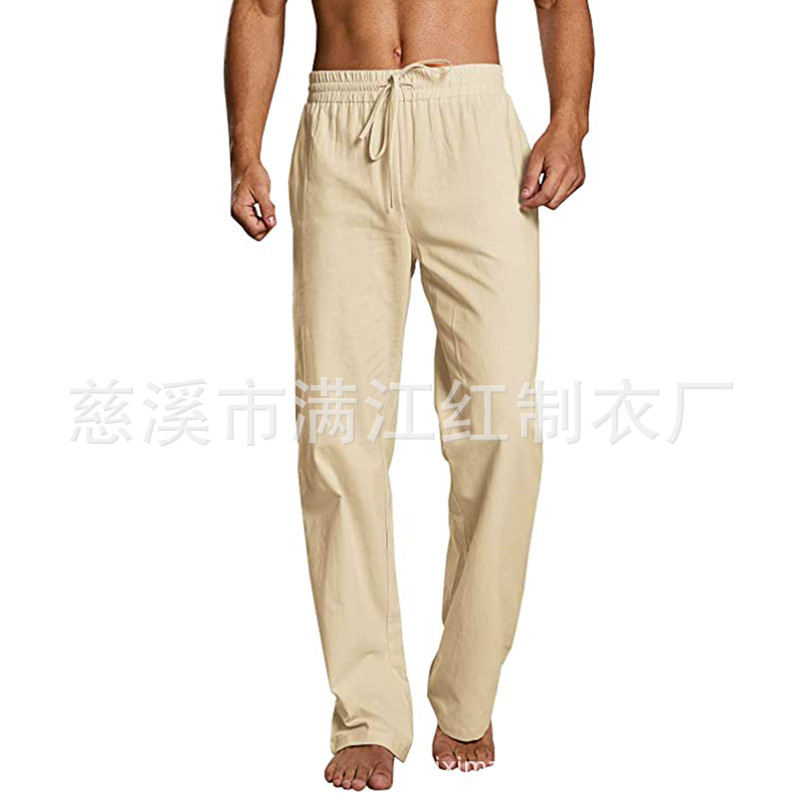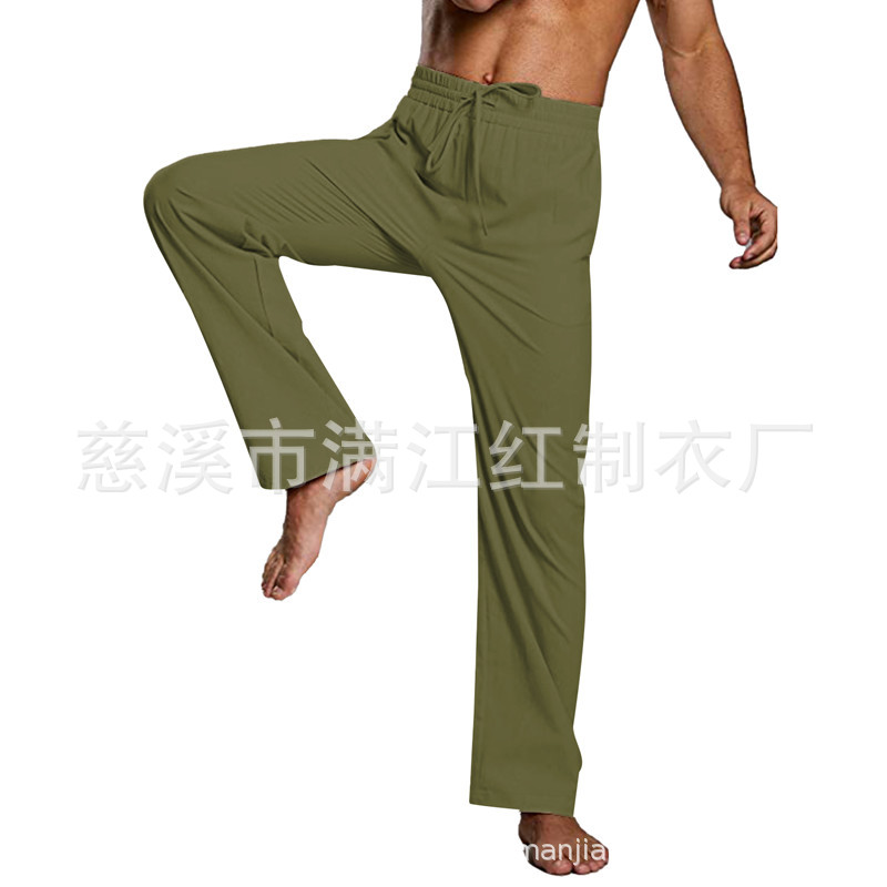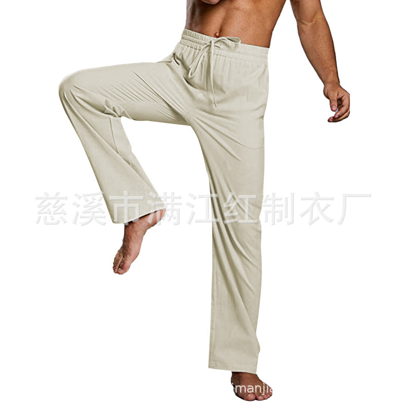 유럽 코드 2022 봄과 가을 새로운 남성의면과 린넨 바지 요가 바지 트레이닝 캐주얼 바지 피트니스 러닝 스포츠 바지