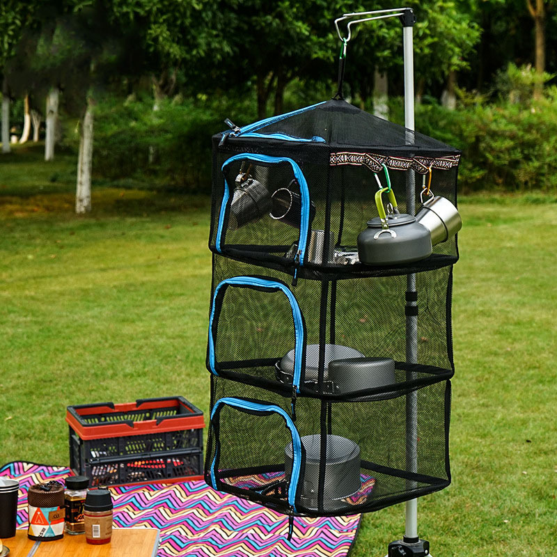 Su Mi 야외 접이식 그물 캠핑 4 층 보관 바구니 그물 바구니 낚시 건조 말린 생선 및 야채 건조 랙