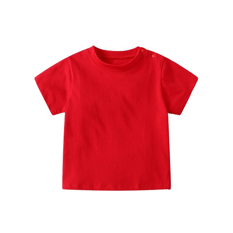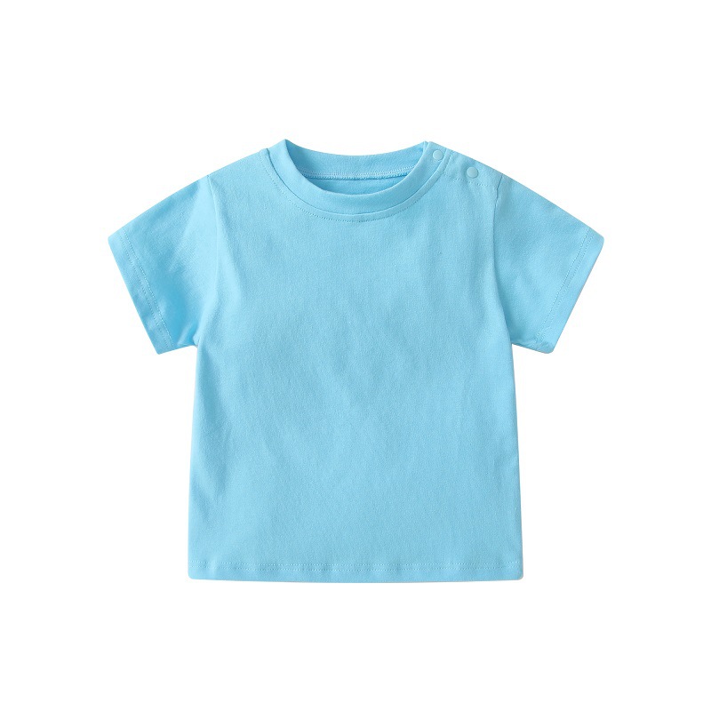유아 여름 어깨 버클 티셔츠 어린이 단색 면 티셔츠 반소매 옷 아기의 반 소매 기본 셔츠 위 옷스토어 가기